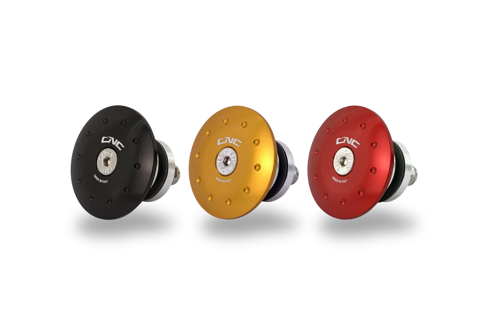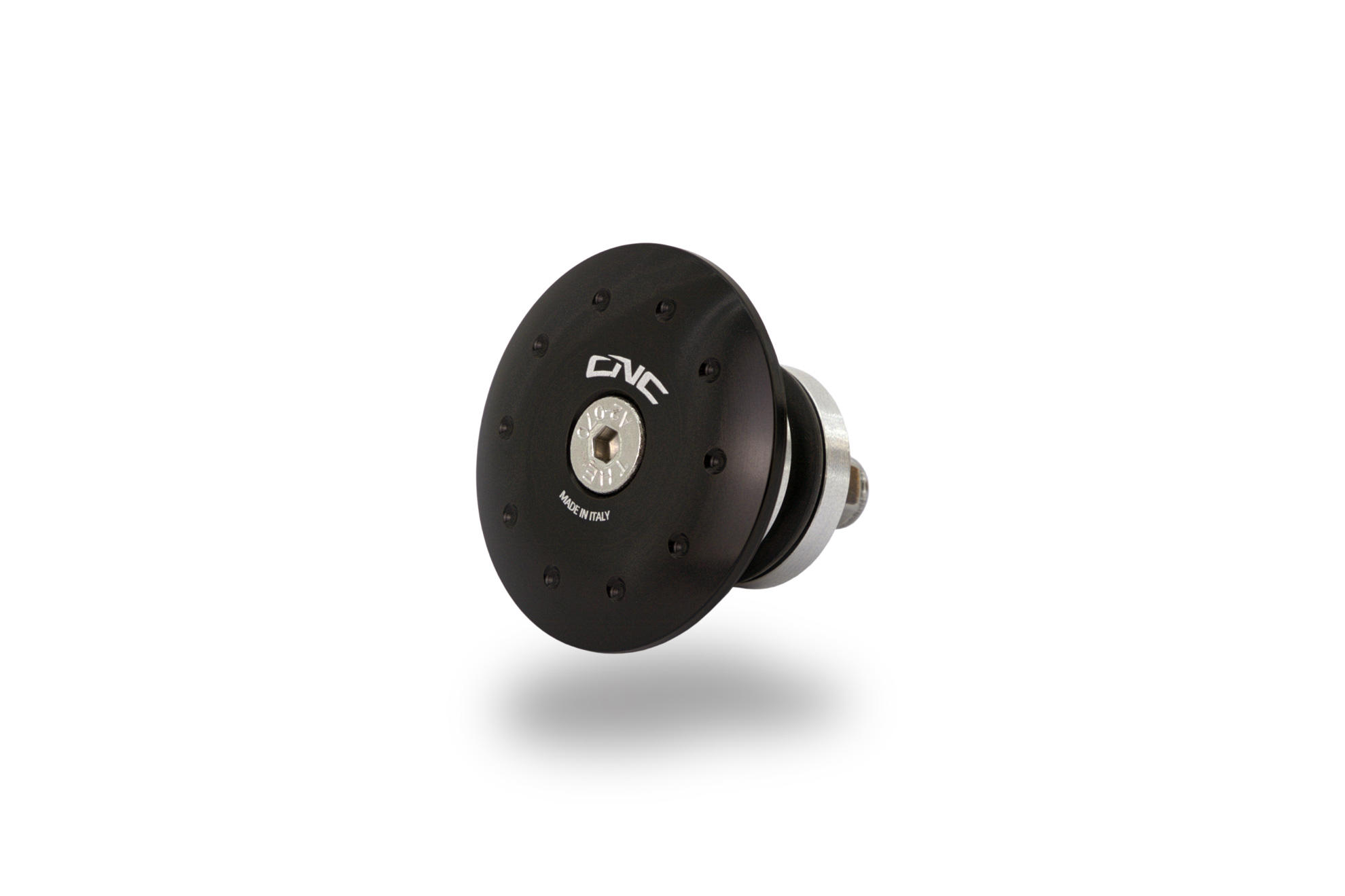 Rear wheel spindle plug, left hand, made in light alloy, machined from solid and then anodized.