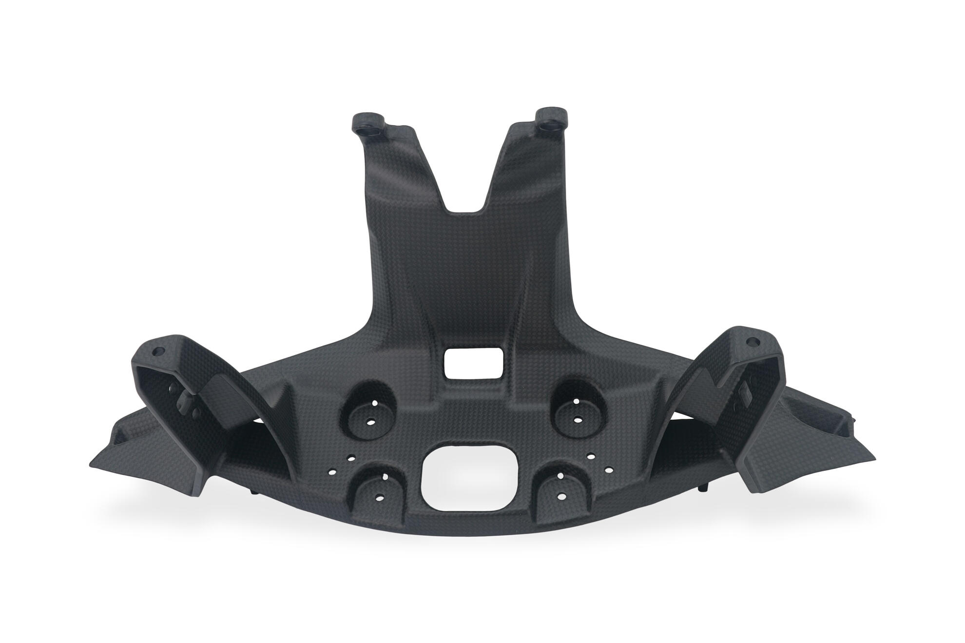 Carbon fiber instrument support for Ducati Panigale V4 MY 2025, manufactured from plain-weave carbon fiber with a matte finish.