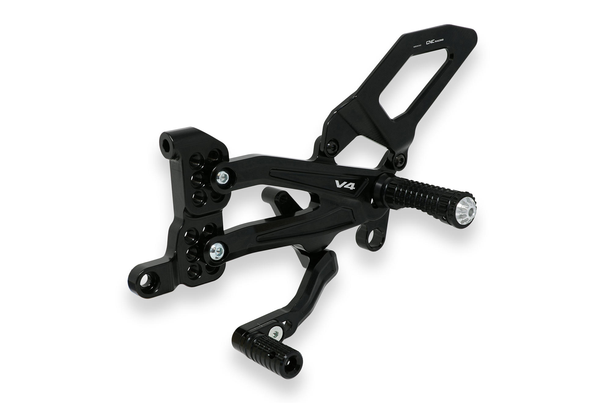 Top quality materials, robustness and specific assembly components for extreme use characterize the new rear sets for Ducati Panigale V4.
