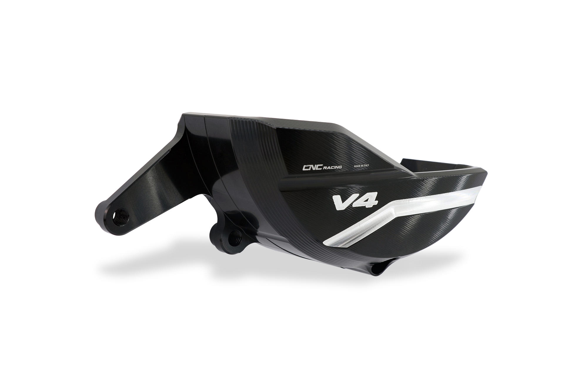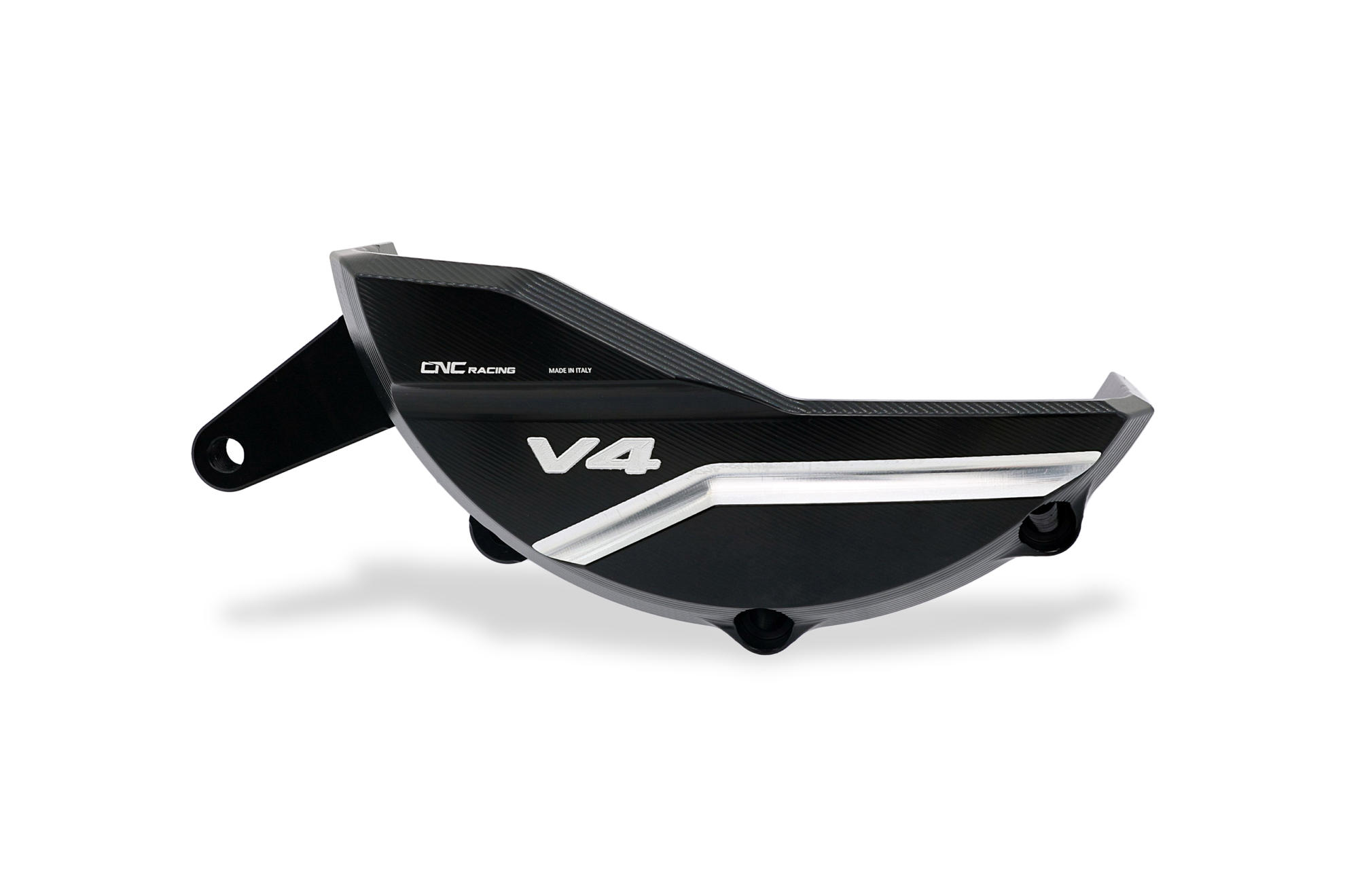 Protezione carter alternatore lavorato dal pieno in lega leggera con successiva anodizzazione superficiale.