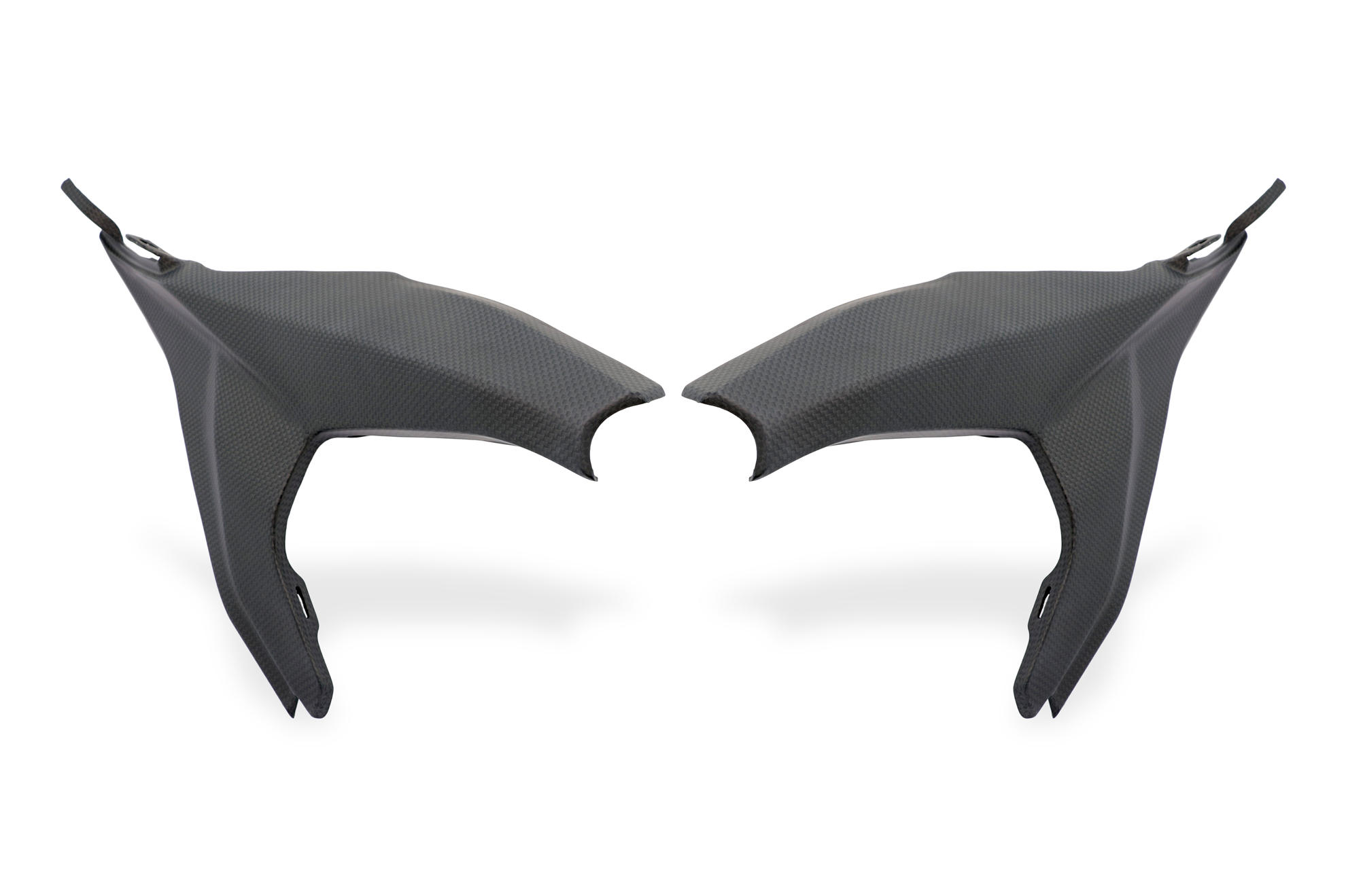 Fianchetti laterali telaietto posteriore per la  Ducati Streetfighter V2 realizzati in carbonio trama plain con lavorazione in autoclave.