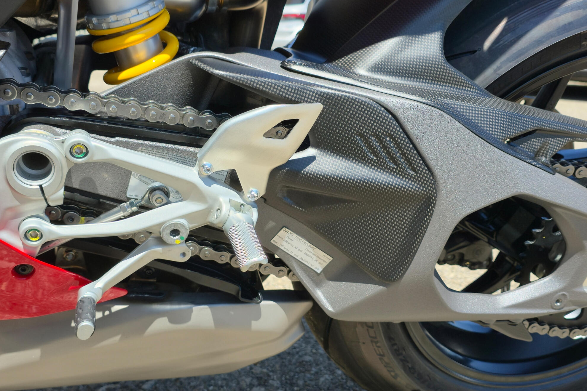 Cover forcellone per Ducati Panigale V4 e Streetfighter V4 realizzata in carbonio trama twill con lavorazione in autoclave.