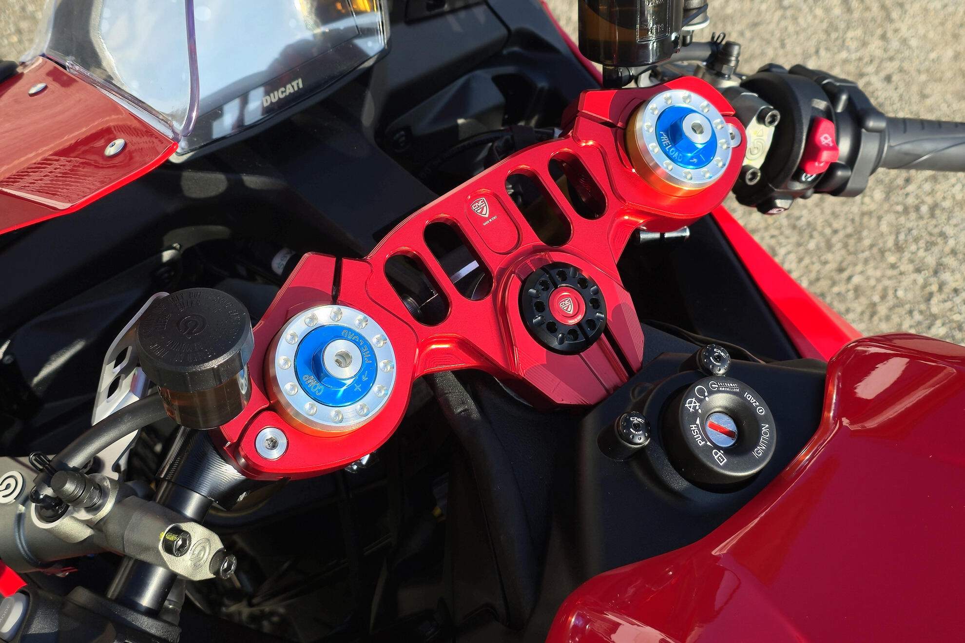 I morsetti CNC Racing non sono solo un componente, ma la chiave per sbloccare il pieno potenziale sportivo della tua Panigale V2. La lavorazione dal pieno garantisce tolleranze minime e una precisione assoluta, assicurando una connessione solida e sicura tra i semimanubri da corsa e la piastra di sterzo. Questa maggiore rigidità si traduce in un feedback di guida più diretto e in un controllo superiore, permettendoti di spingere la moto al limite con maggiore fiducia.
