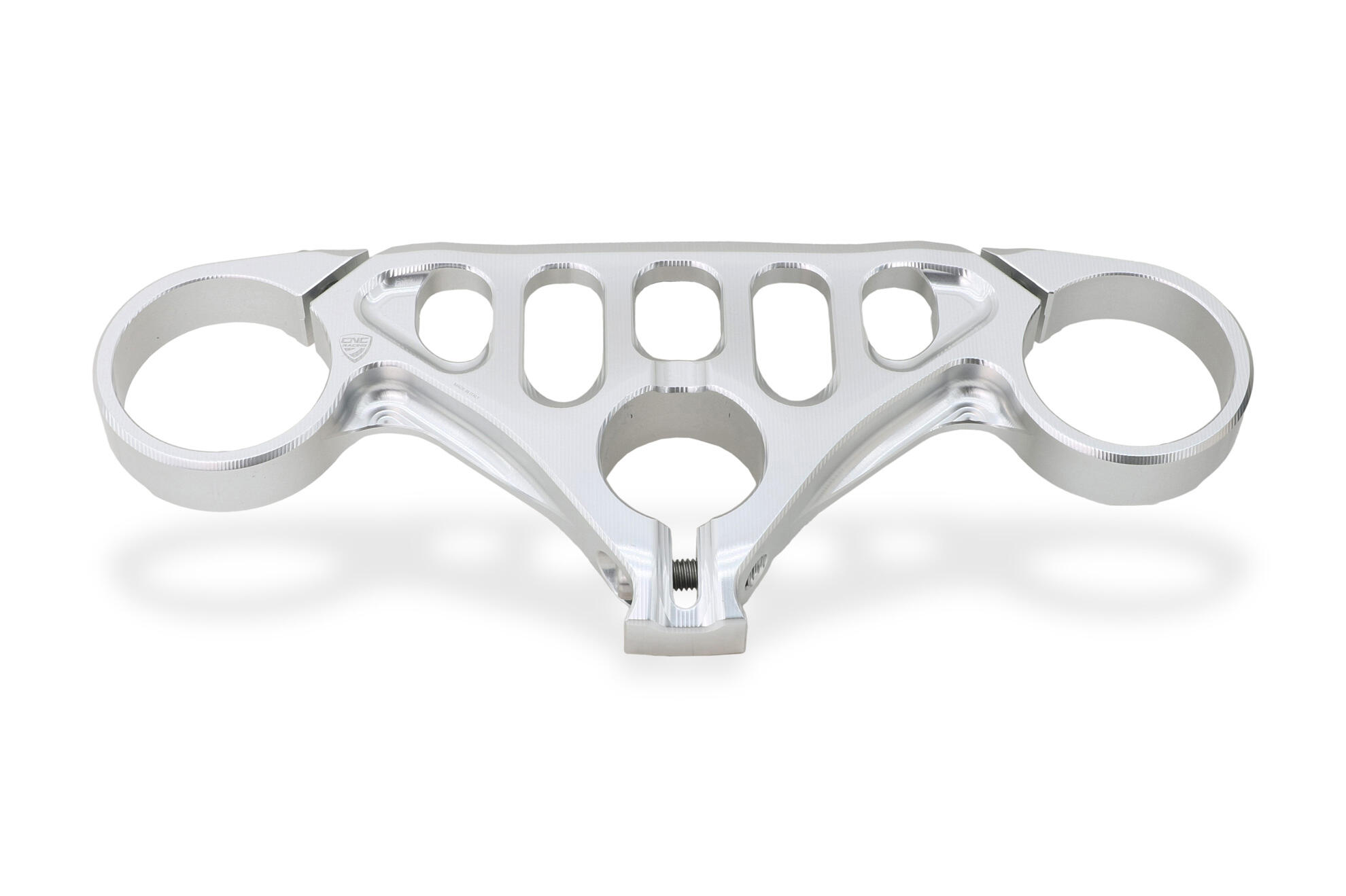 Piastra di sterzo superiore per Ducati Panigale V4 realizzata dal pieno in lega leggera con successiva anodizzazione superficiale.