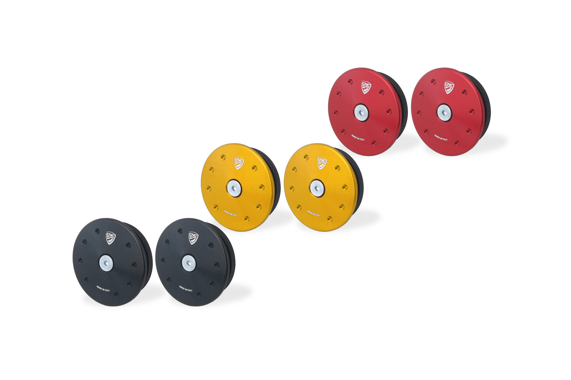 Kit tappi telaio per la Moto Guzzi v100 Mandello realizzati dal pieno in lega leggera con successiva anodizzazione superficiale.