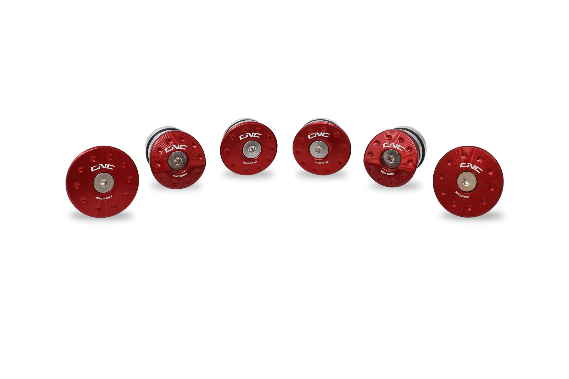 Il kit è composto da 6 tappi in lega leggera ricavati del pieno tramite l'utilizzo di macchine cnc da utilizzarsi in abbinamento con i tamponi telaio TC323.
