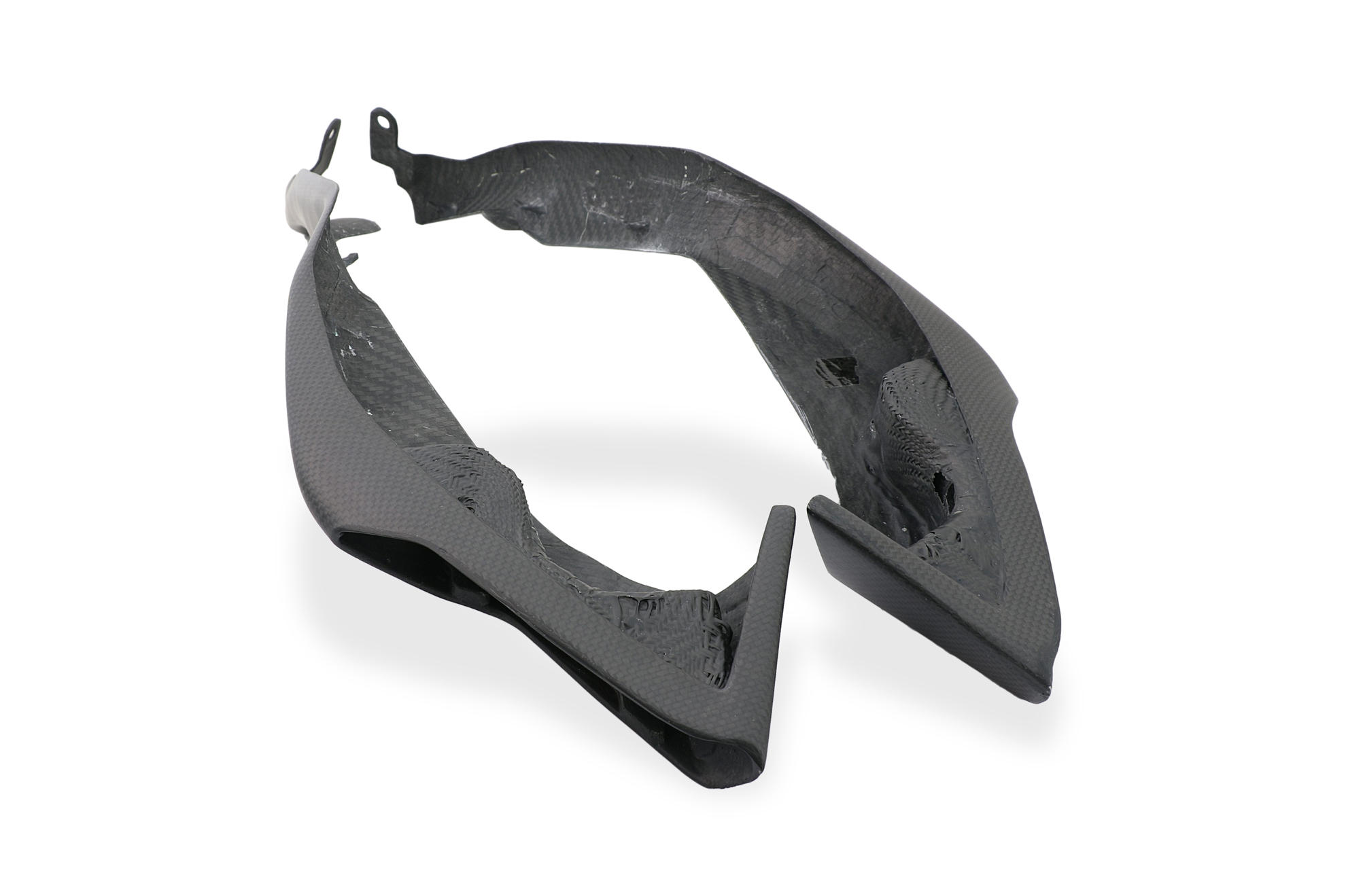 Kit cover inferiori serbatoio carburante con sede frecce anteriori per Ducati Monster 937 realizzato in carbonio trama twill con lavorazione in autoclave.