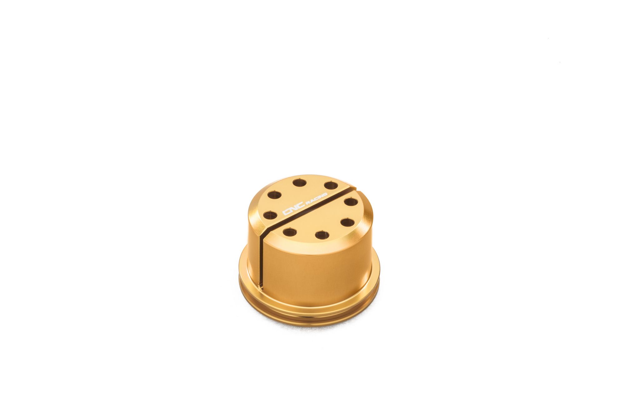 Ghiera di sterzo lavorato dal pieno in lega leggera tramite macchine a controllo numero, e successiva anodizzazione colorata superficiale.