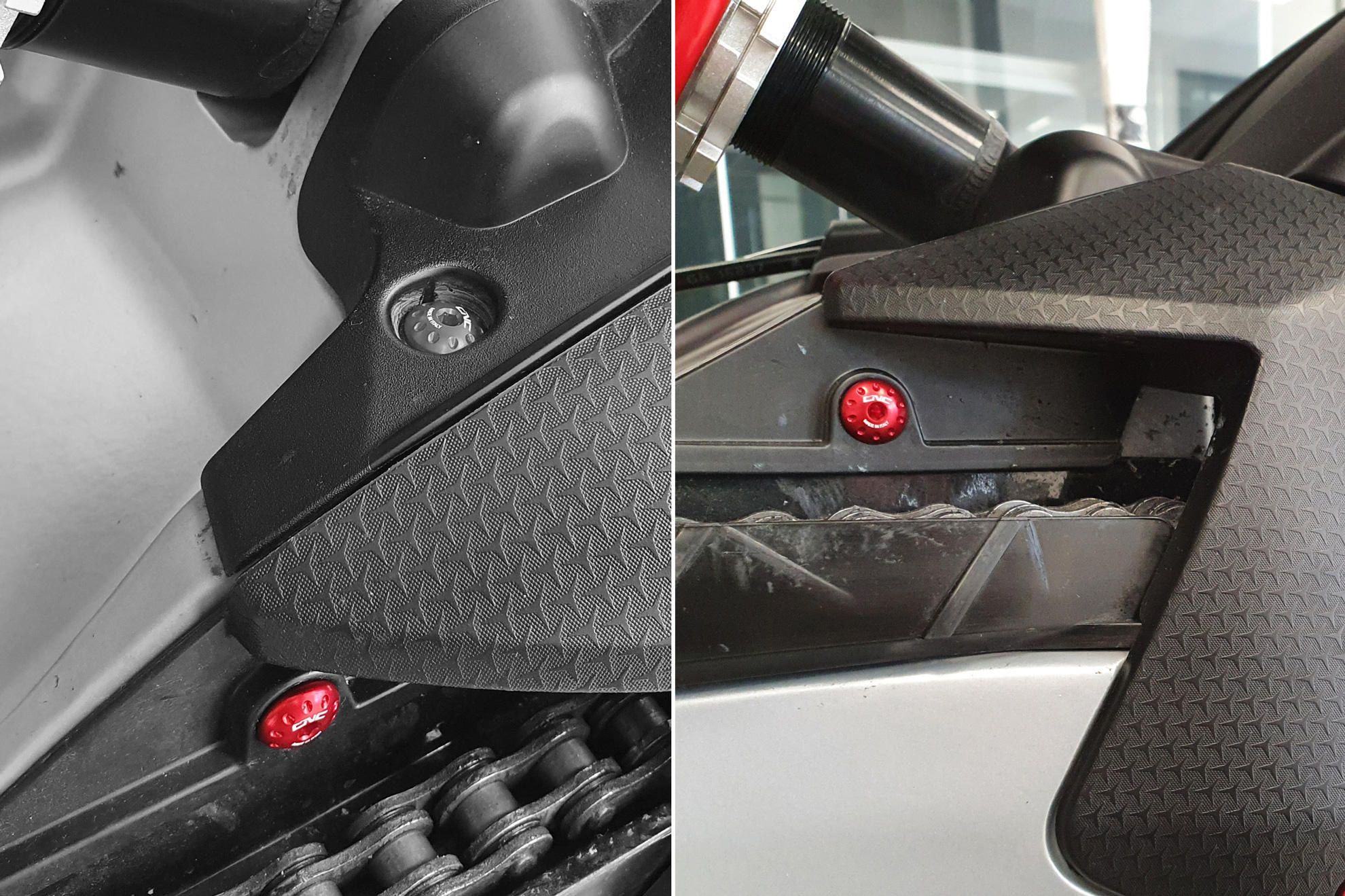 Kit viti pattino catena per Aprilia RS 660 realizzata dal pieno in lega leggera con successiva anodizzazione superficiale.
