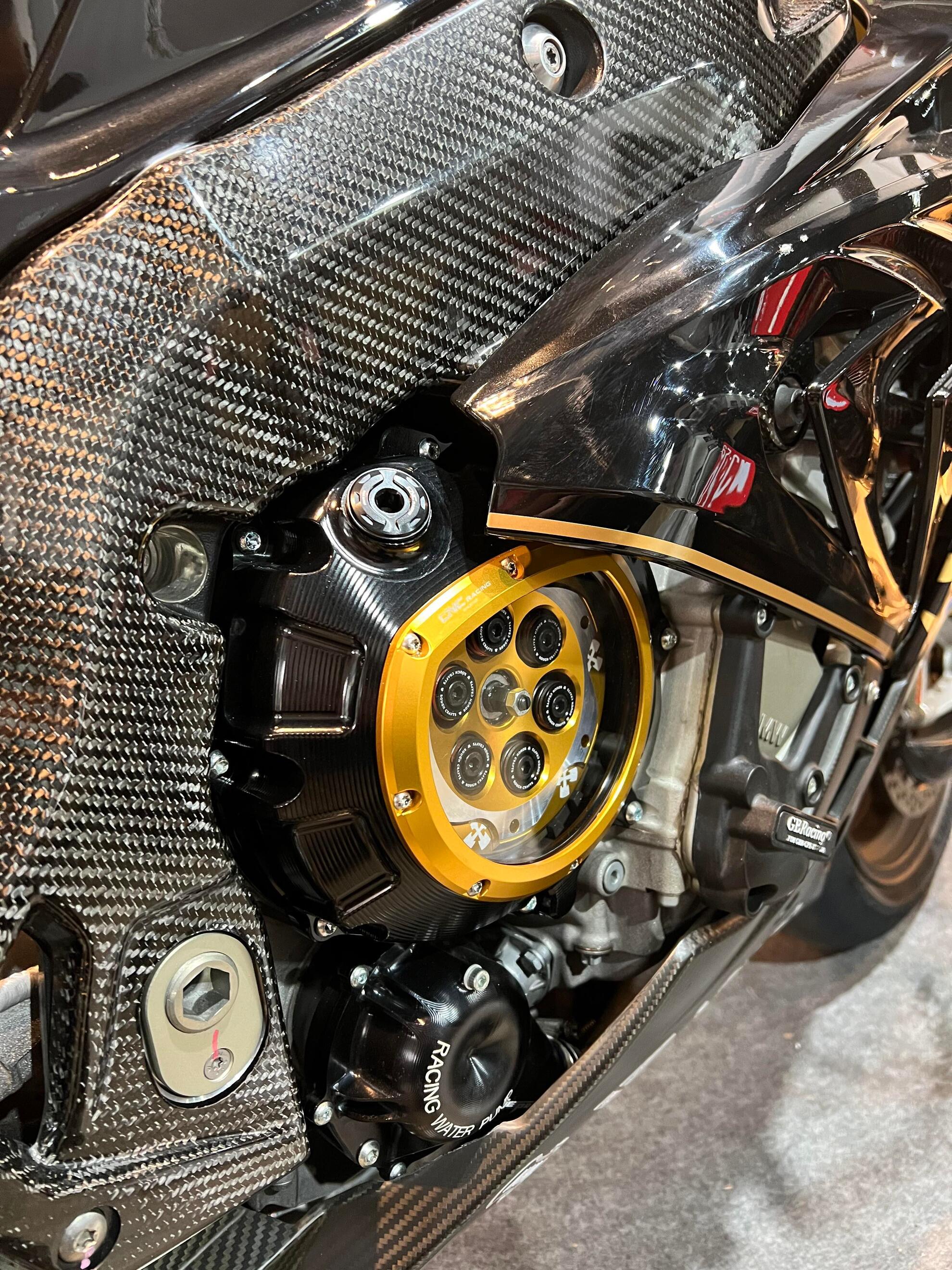 The black base is the most “stealth” option: it frames the transparent window and gives the engine side a more aggressive, modern look. Perfect for riders who want a clean racing style with maximum visual coherence alongside dark components or matte finishes.