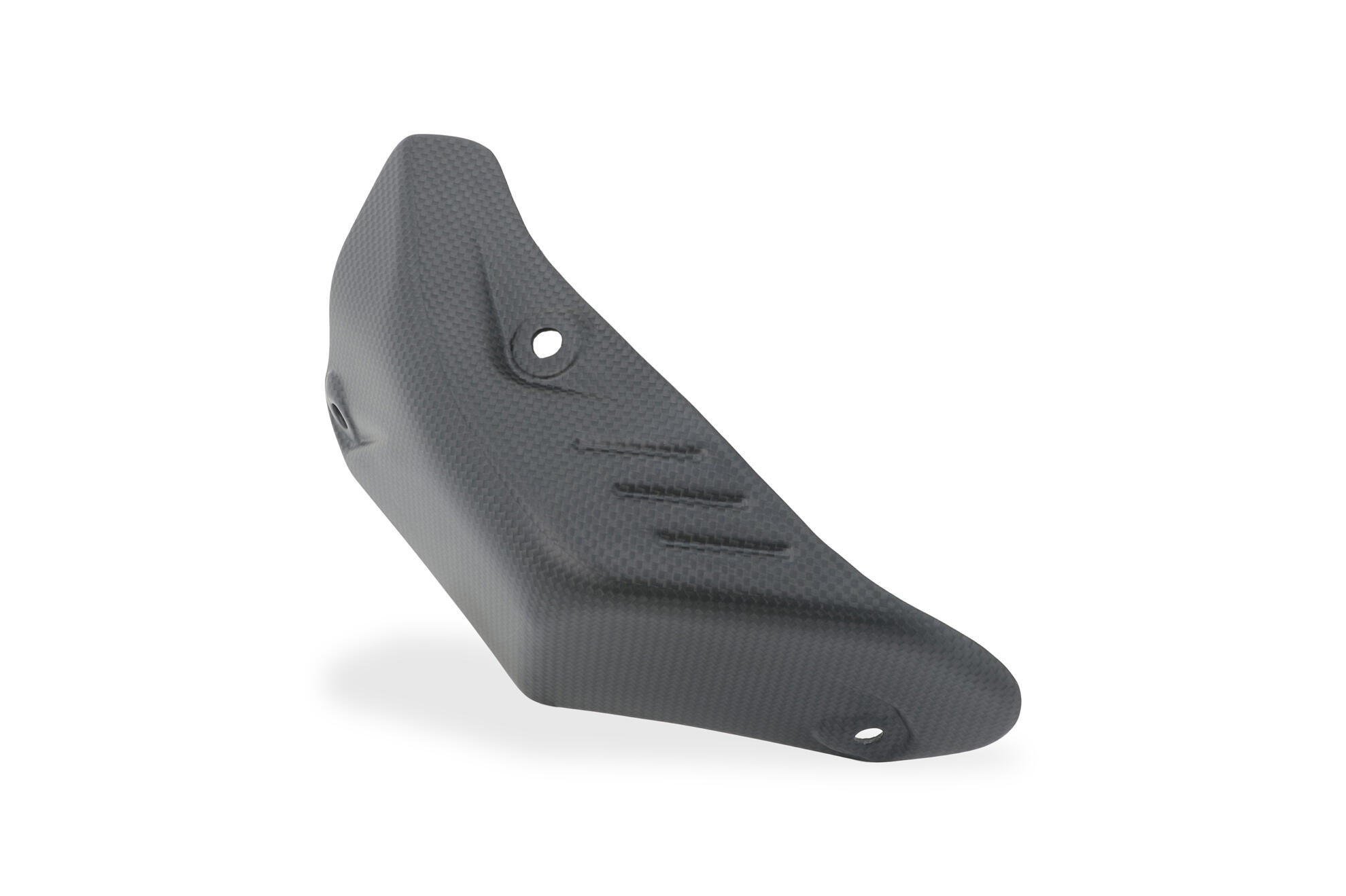 Rear heat guard of the exhaust pipe for Ducati Hypermotard 698 Mono made in carbon fiber texture plain with autoclave process. On the whole lower side there is a heat reflective lining