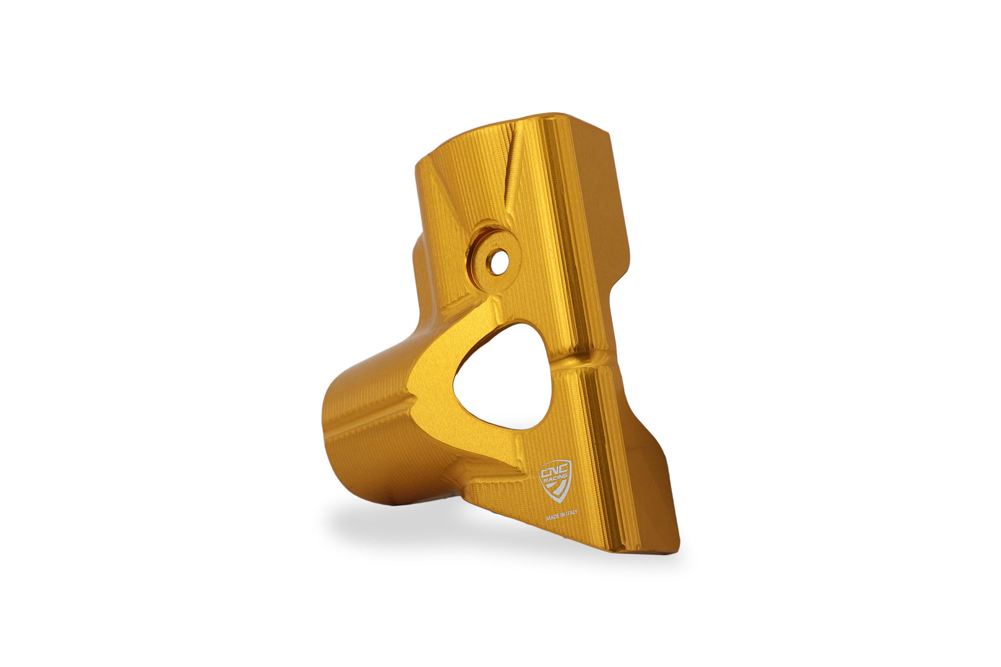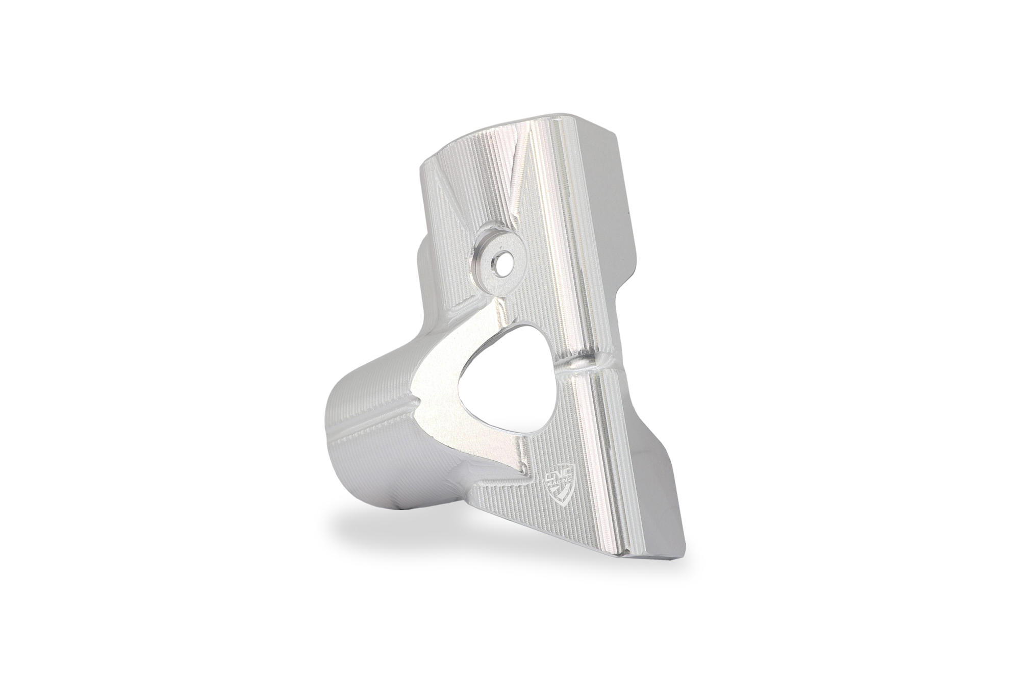 Radiator side protector made in light alloy, machined from solid and then anodized.
