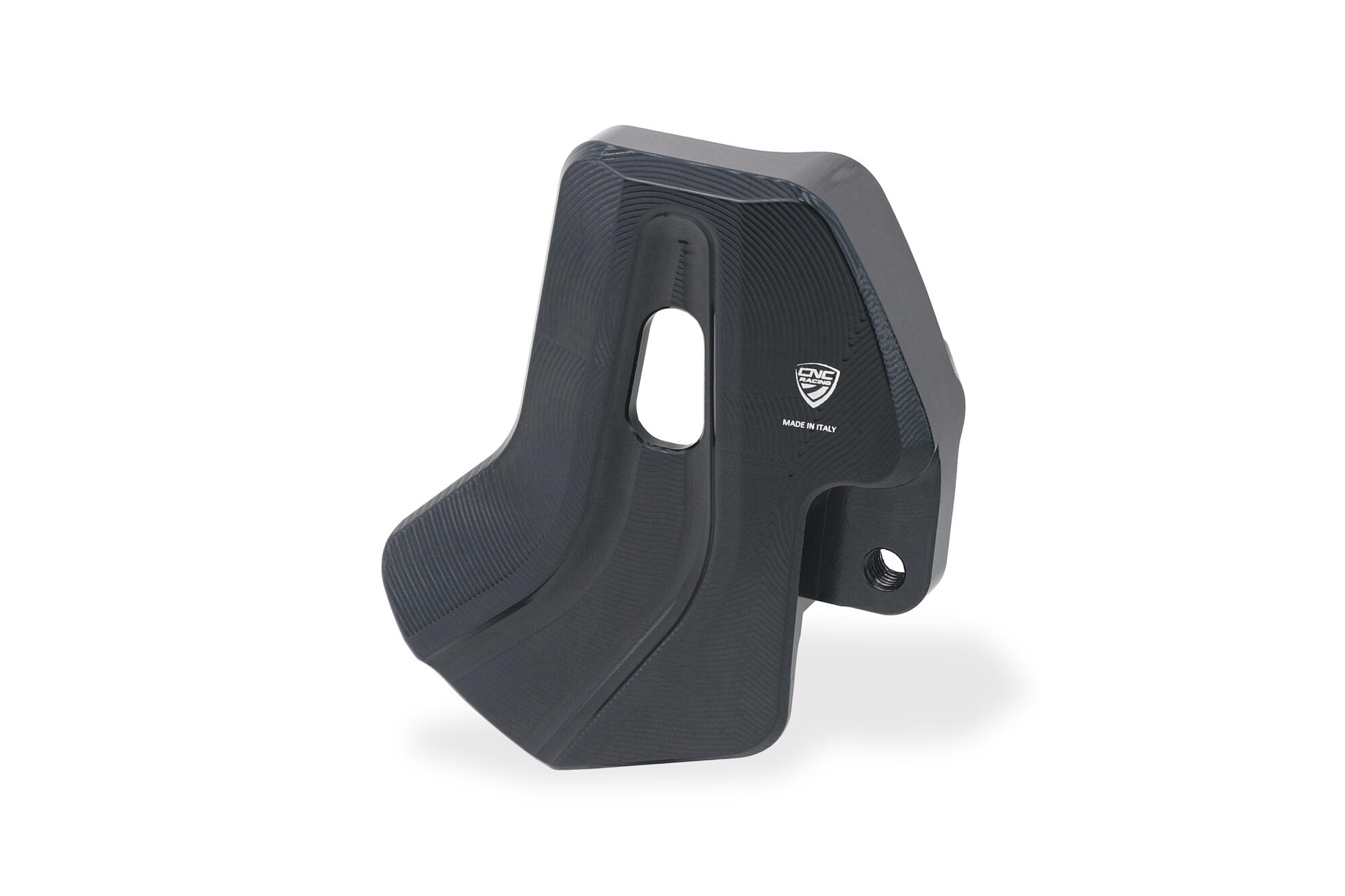 Rear brake fluid tank holder for the Ducati Hypermotard 698 Mono made in light alloy, machined from solid and then anodized.
