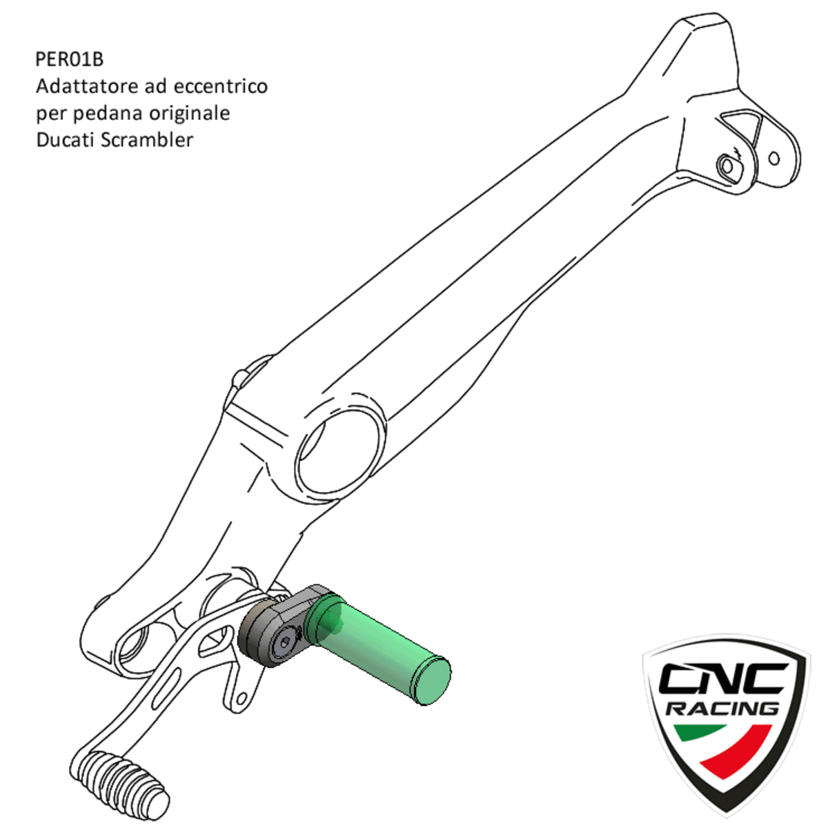 Footrest support for OEM rear sets, with eccentric adjustment, allows you to mount any footrest with M8 and to choose the most suitable among the 24 possible positions. The range of adjustments is ± 25mm. than the original location, in the four directions.