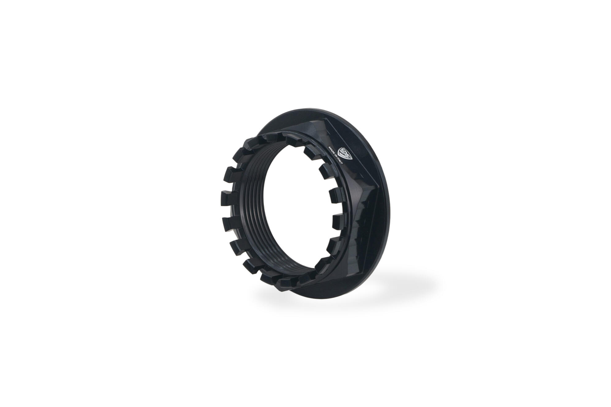 Rear wheel nut left side made in light alloy, machined from solid and then anodized.