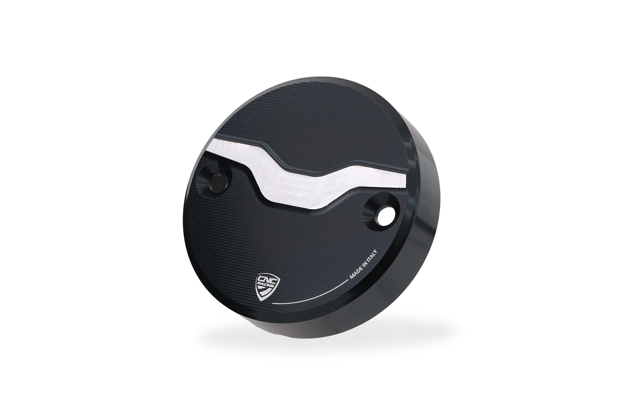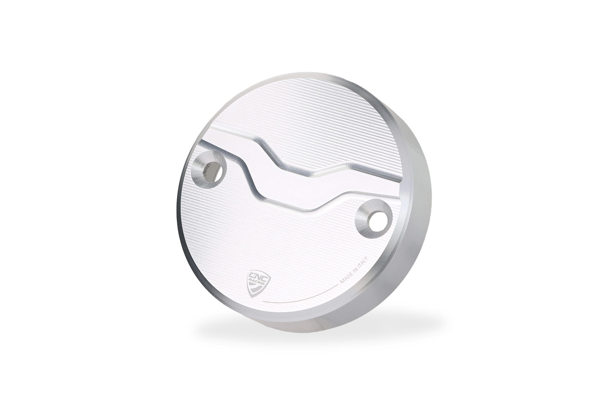 Front brake fluid reservoir cap for Moto Guzzi made in light alloy, machined from solid and then anodized.