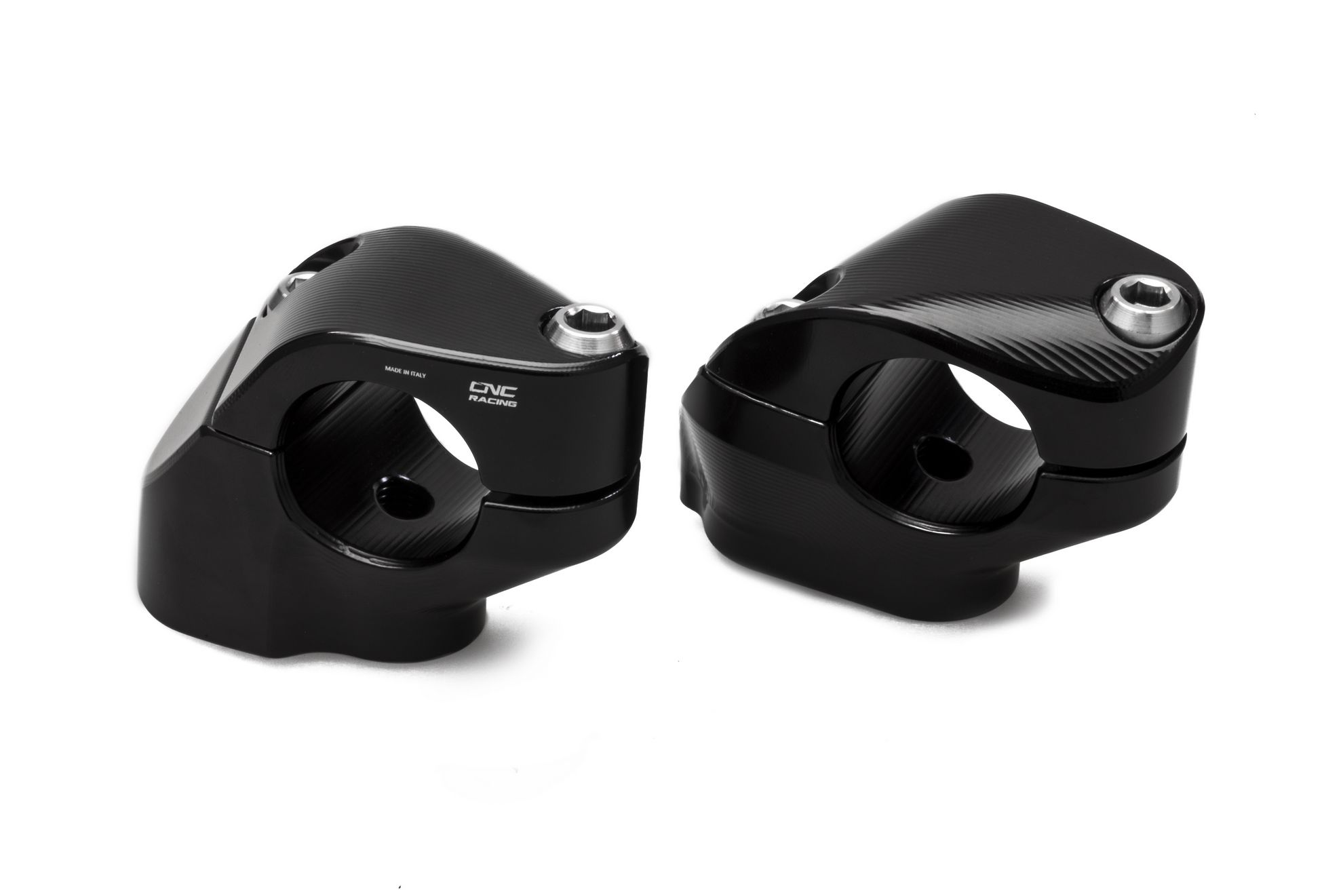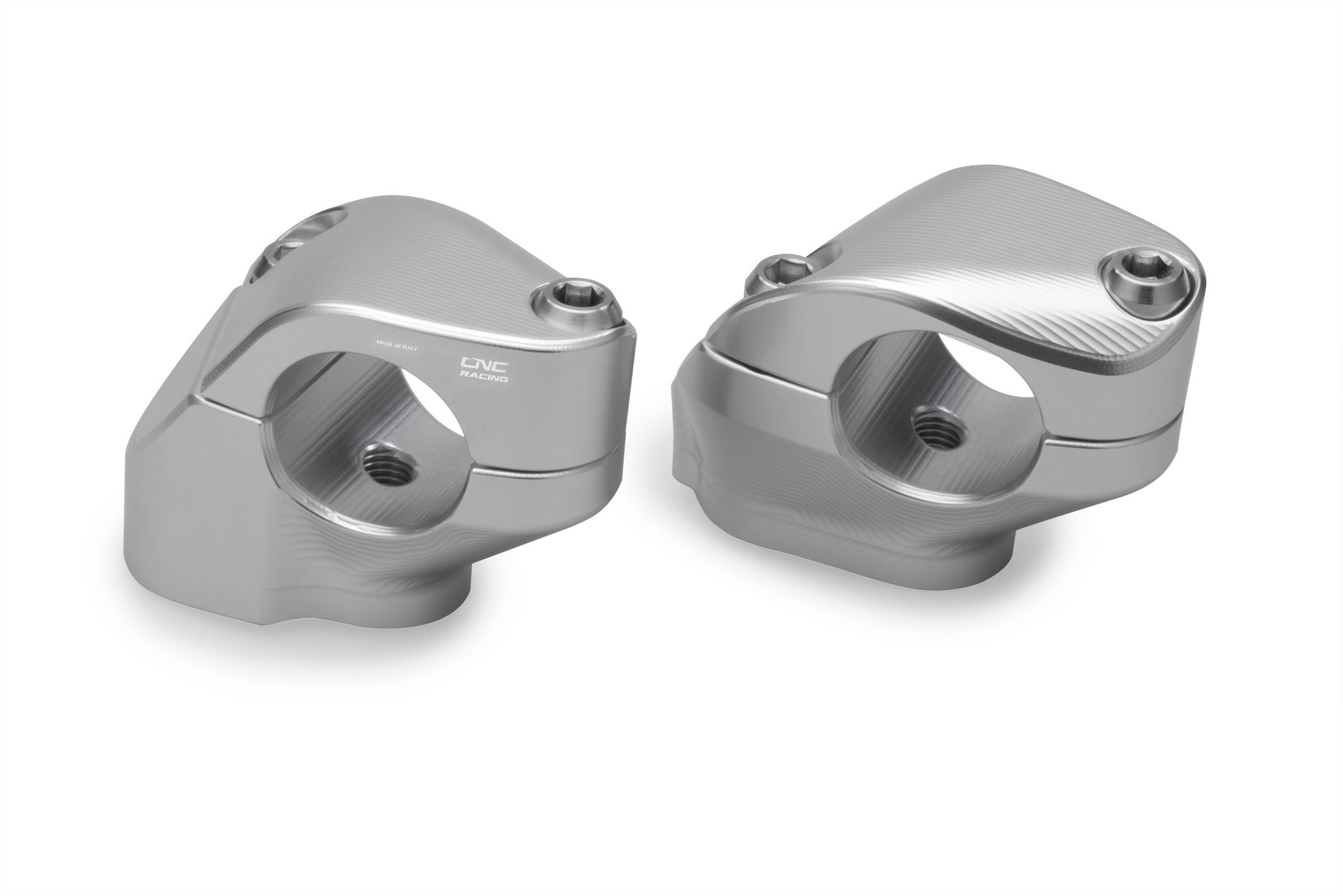 Handlebar clamp Ø28,6 mm from light alloy billet and then given an anodized surface finish.