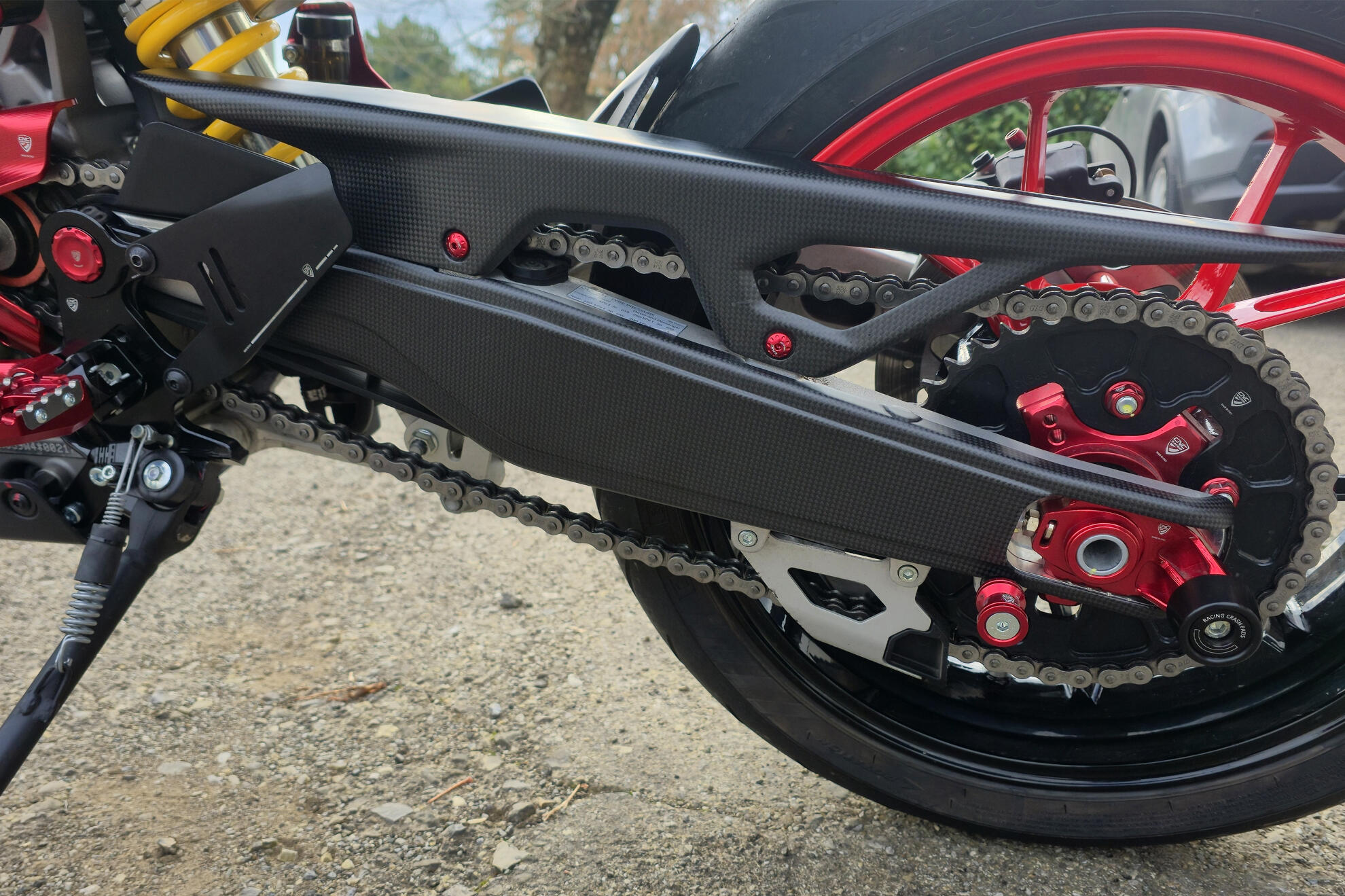 Cover forcellone ad alte prestazioni progettata per garantire massima protezione e un upgrade estetico di livello premium alla Ducati Hypermotard 698 Mono. Realizzata in vero carbonio con finitura ad alto standard qualitativo, assicura un’elevata resistenza strutturale e una riduzione del rischio di danneggiamento del forcellone originale in caso di scivolata o impatto.