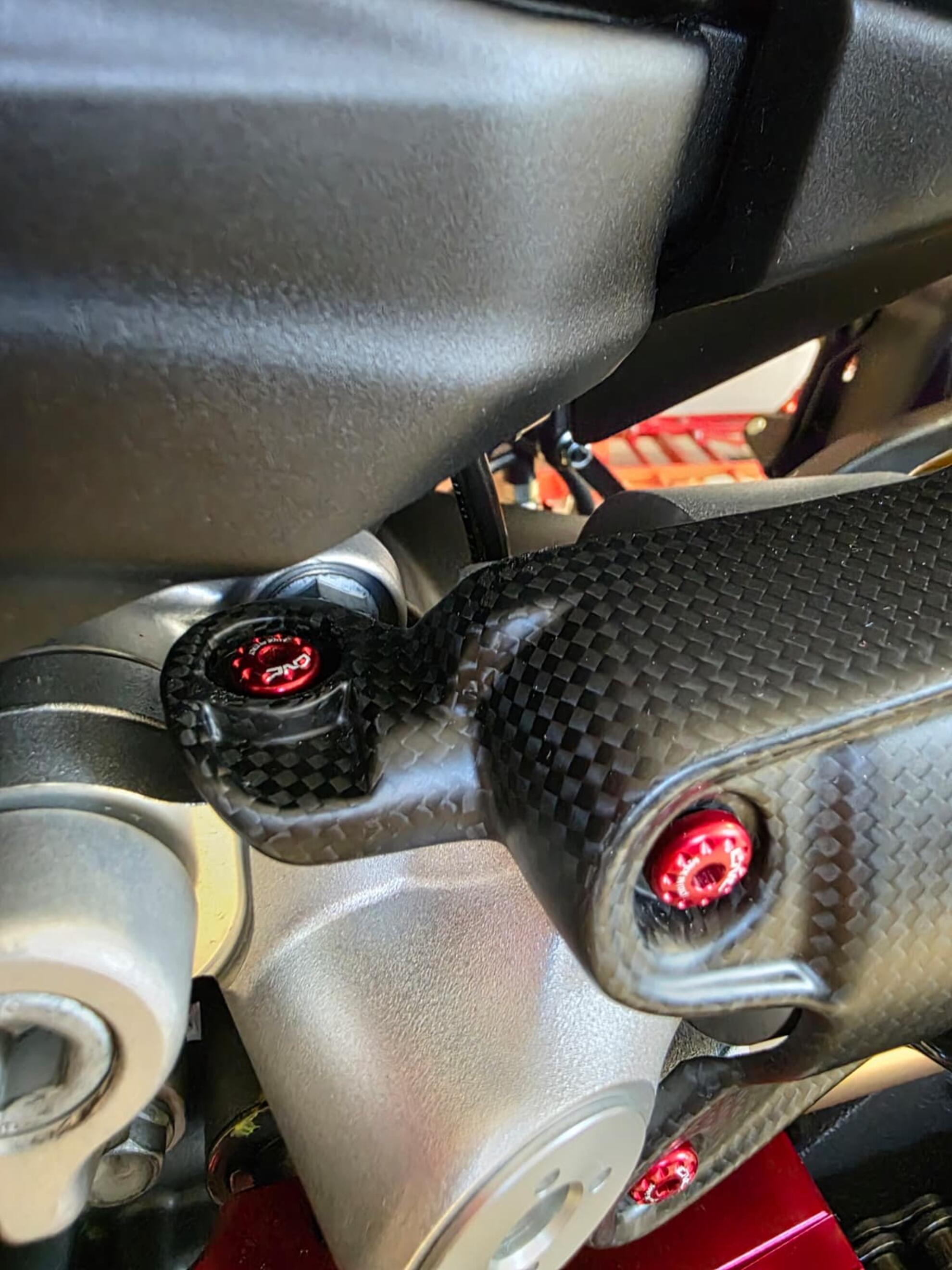 La protezione ammortizzatore posteriore in fibra di carbonio per Multistrada V2 ripara il mono da sporco e detriti, sostituendo la plastica originale con un componente premium più resistente e di alto impatto estetico. Leggera, robusta e perfettamente coordinata agli altri elementi carbonio della V2: l’upgrade ideale per chi vuole più protezione e un retrotreno più curato.