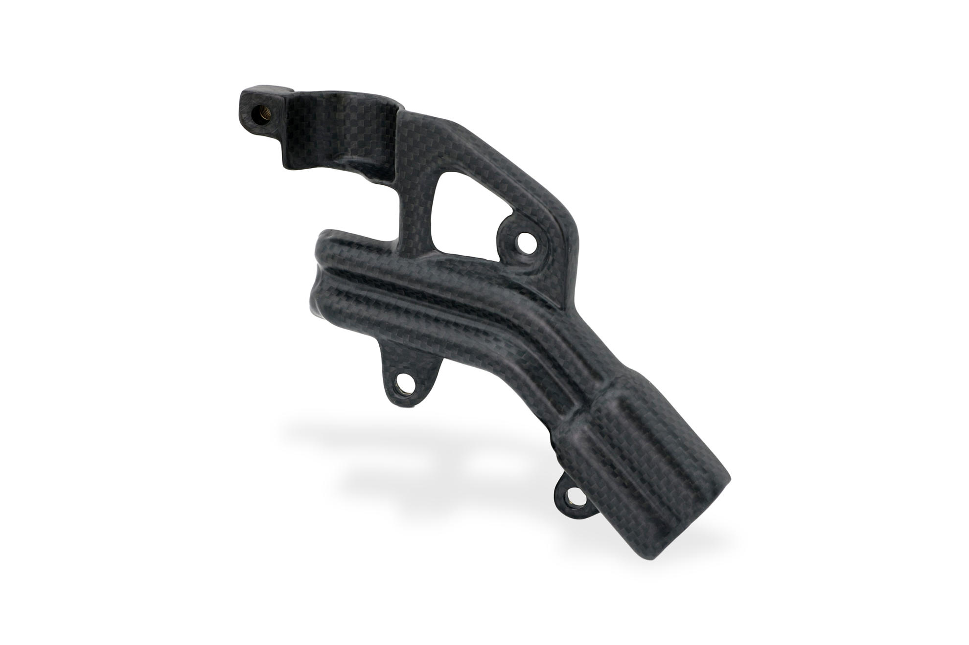 Supporto serbatoio freno posteriore con passacavi per Ducati Streetfighter V4 realizzato in carbonio trama twill con lavorazione in autoclave.