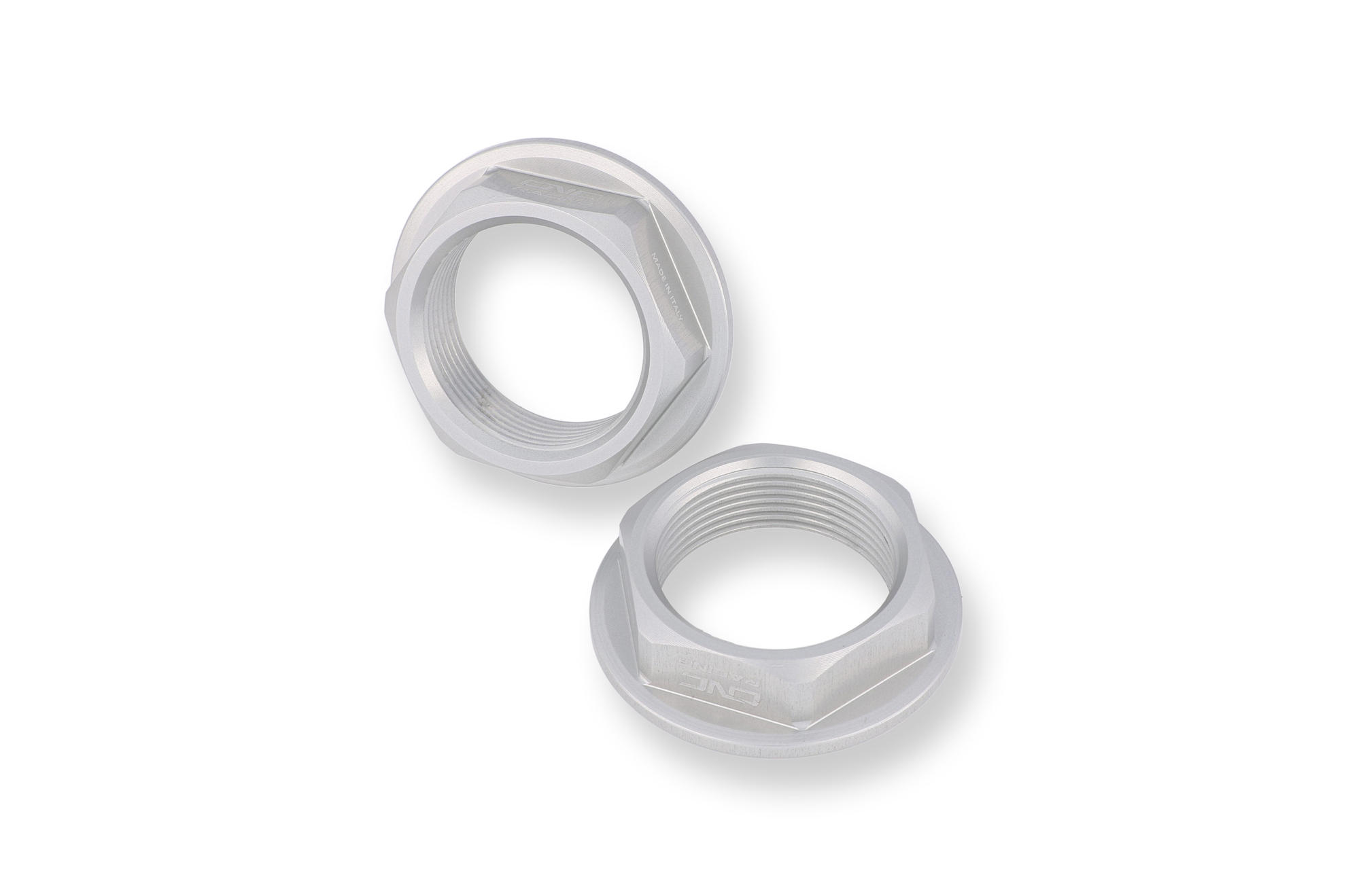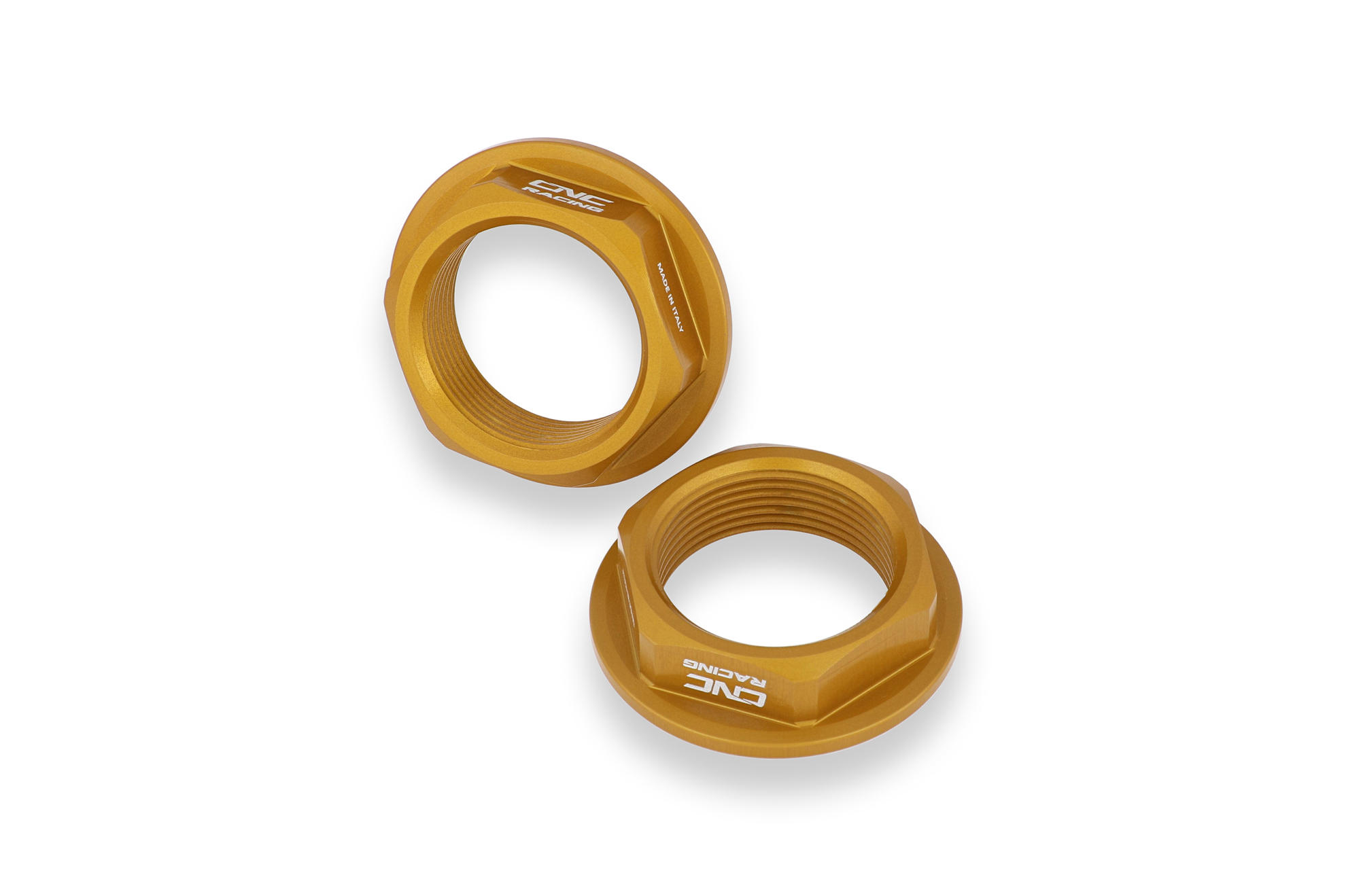 Dadi ruota posteriore realizzati dal pieno in lega leggera con successiva anodizzazione superficiale.