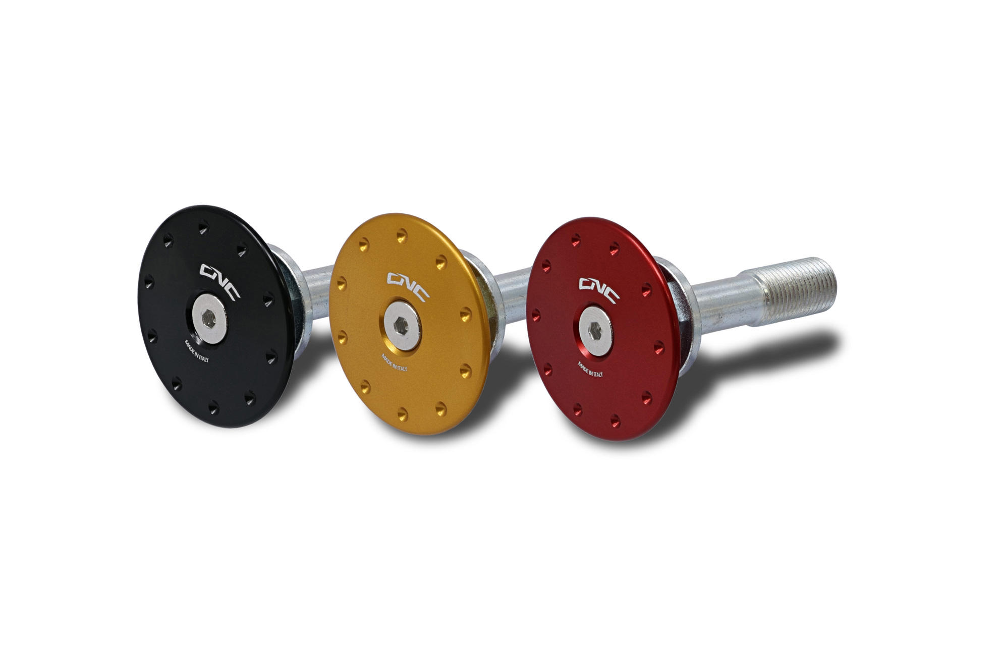 Tappi telaio dedicati per Ducati Streetfighter V4 realizzati dal pieno in lega leggera con successivo trattamento di anodizzazione superciale colorata.