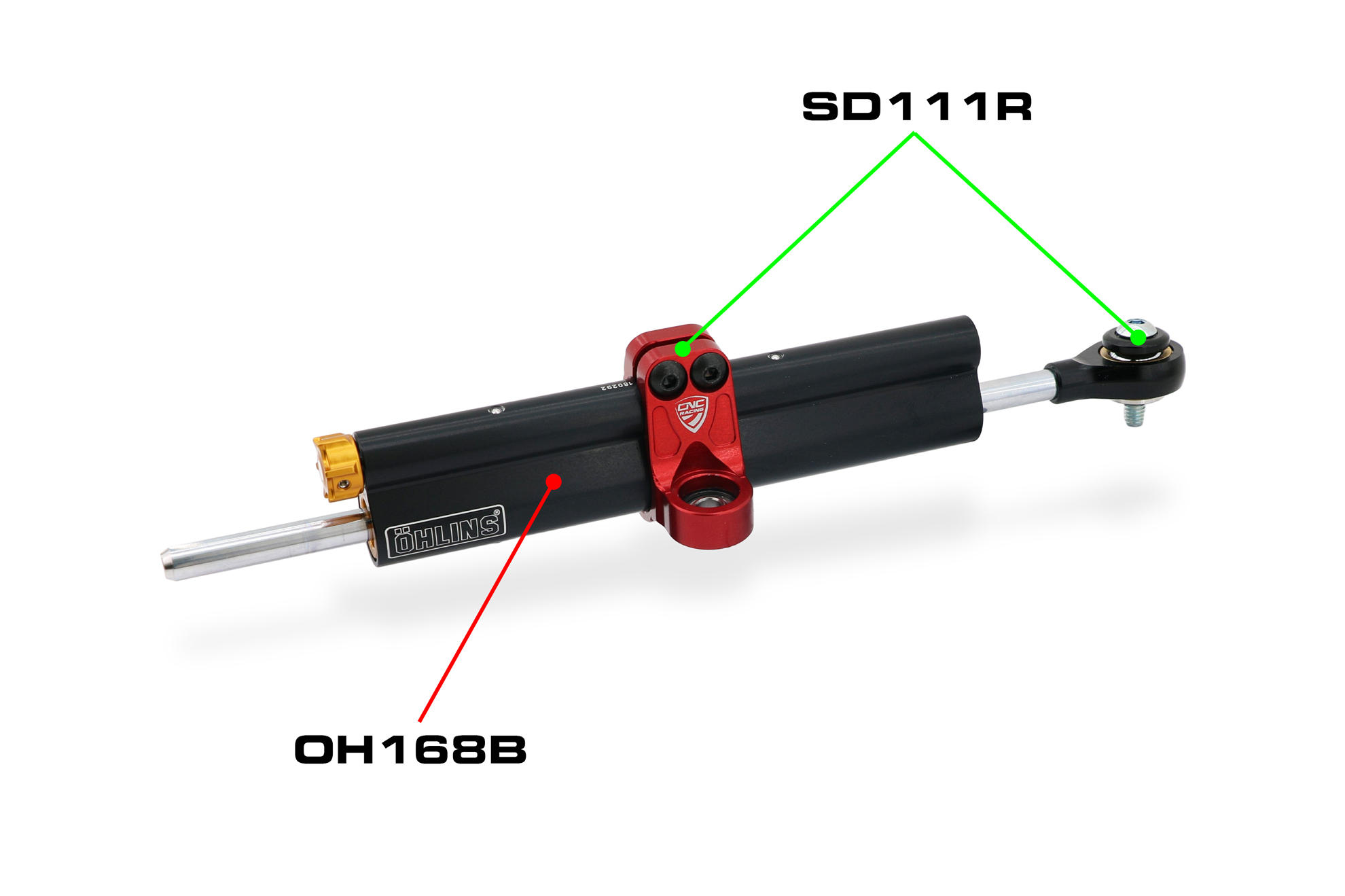 Il kit permette di sostituire l'ammortizzatore di fabbrica privo di regolazioni con il più performante Ohlins lineare da 68 mm di corsa cod OH168S Argento oppure OH168B Nero, da acquistarsi separatamente.
