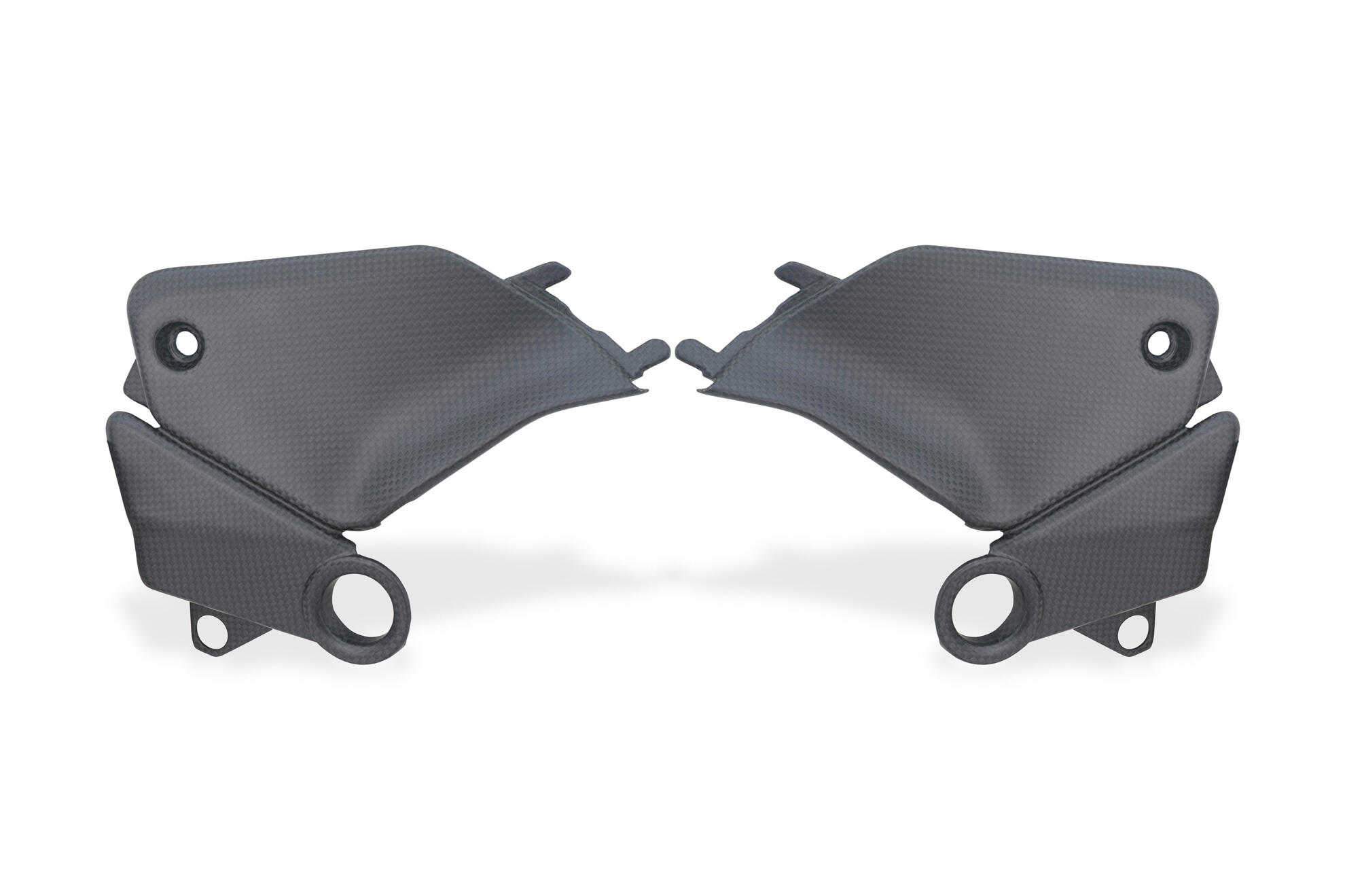 Cover laterali serbatoio destro e sinistro per la Ducati Panigale V4 MY2025 realizzati in fibra di carbonio con trama plain e finitura opaca;