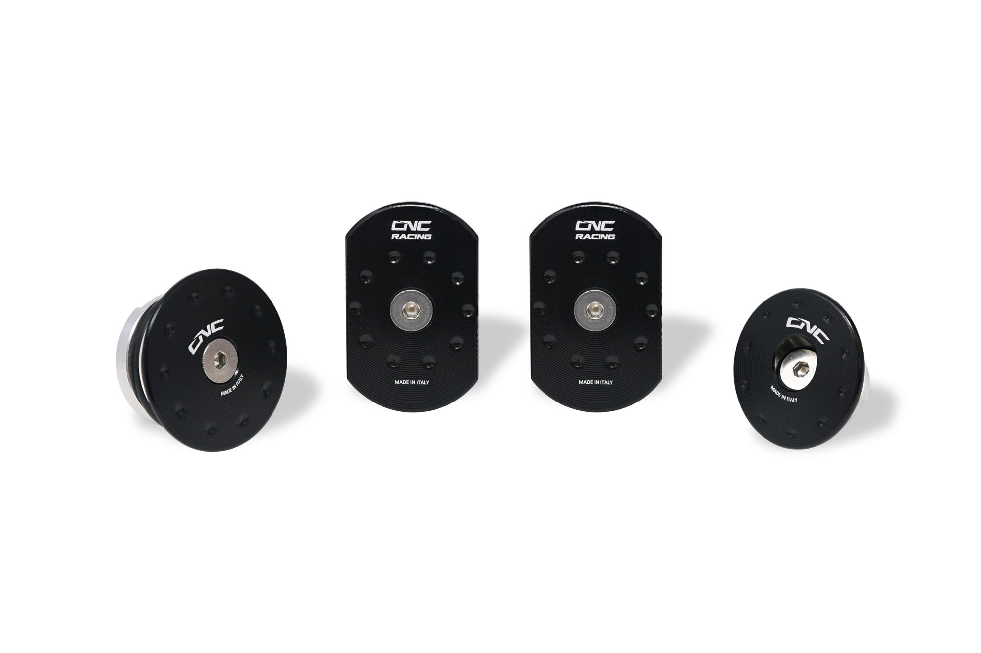 Kit tappi per le piastre laterali del telaio MV Agusta realizzati dal pieno in lega leggera con successiva anodizzazione superficiale.