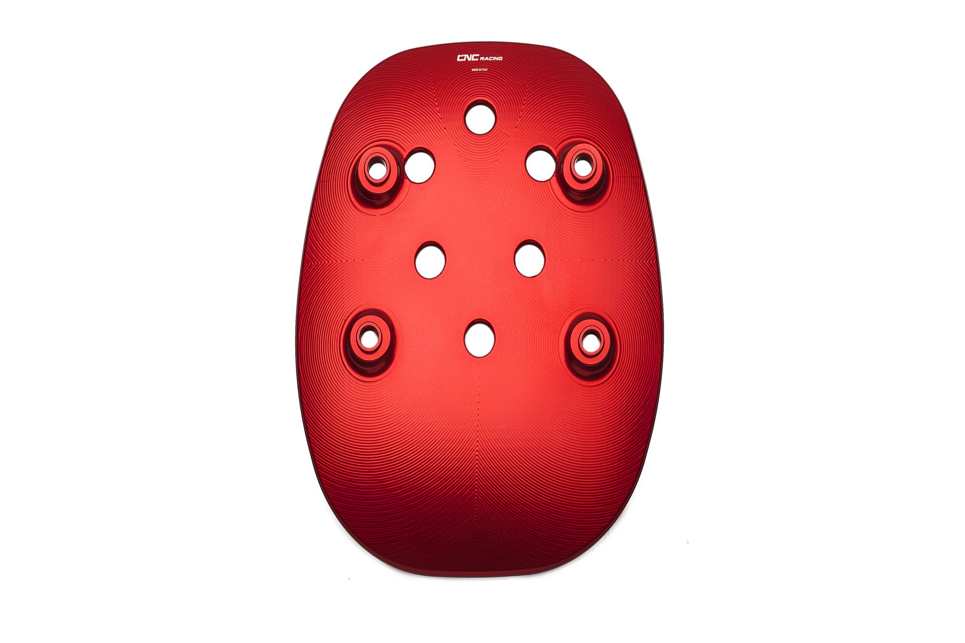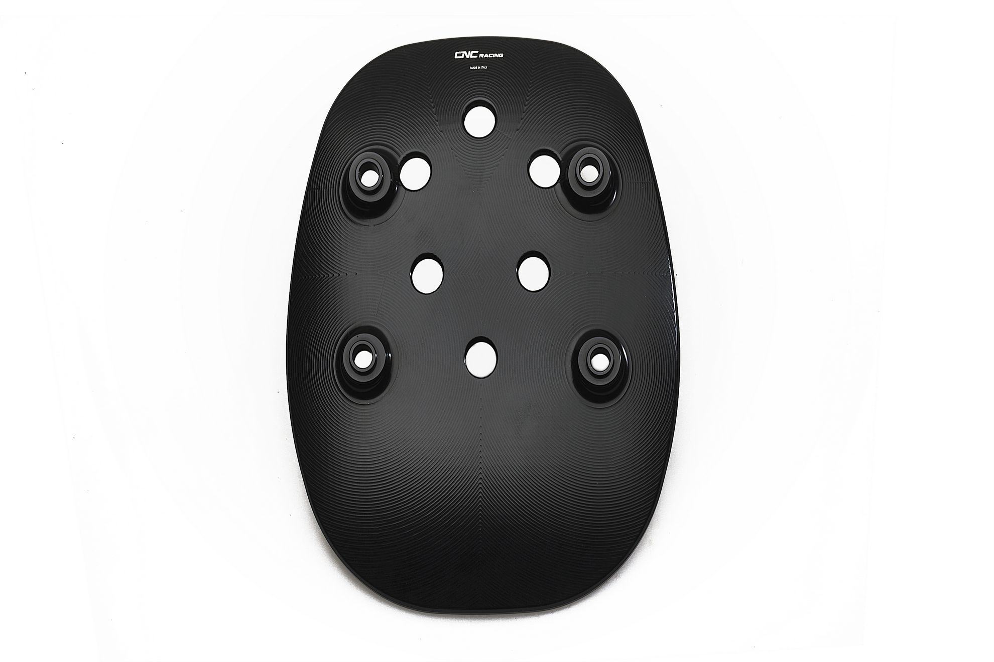 Paraspruzzi ruota posteriore in alluminio ricavato dal pieno con successiva anodizzazione superficiale; sostituisce senza modifiche l'originale in materiale plastico.