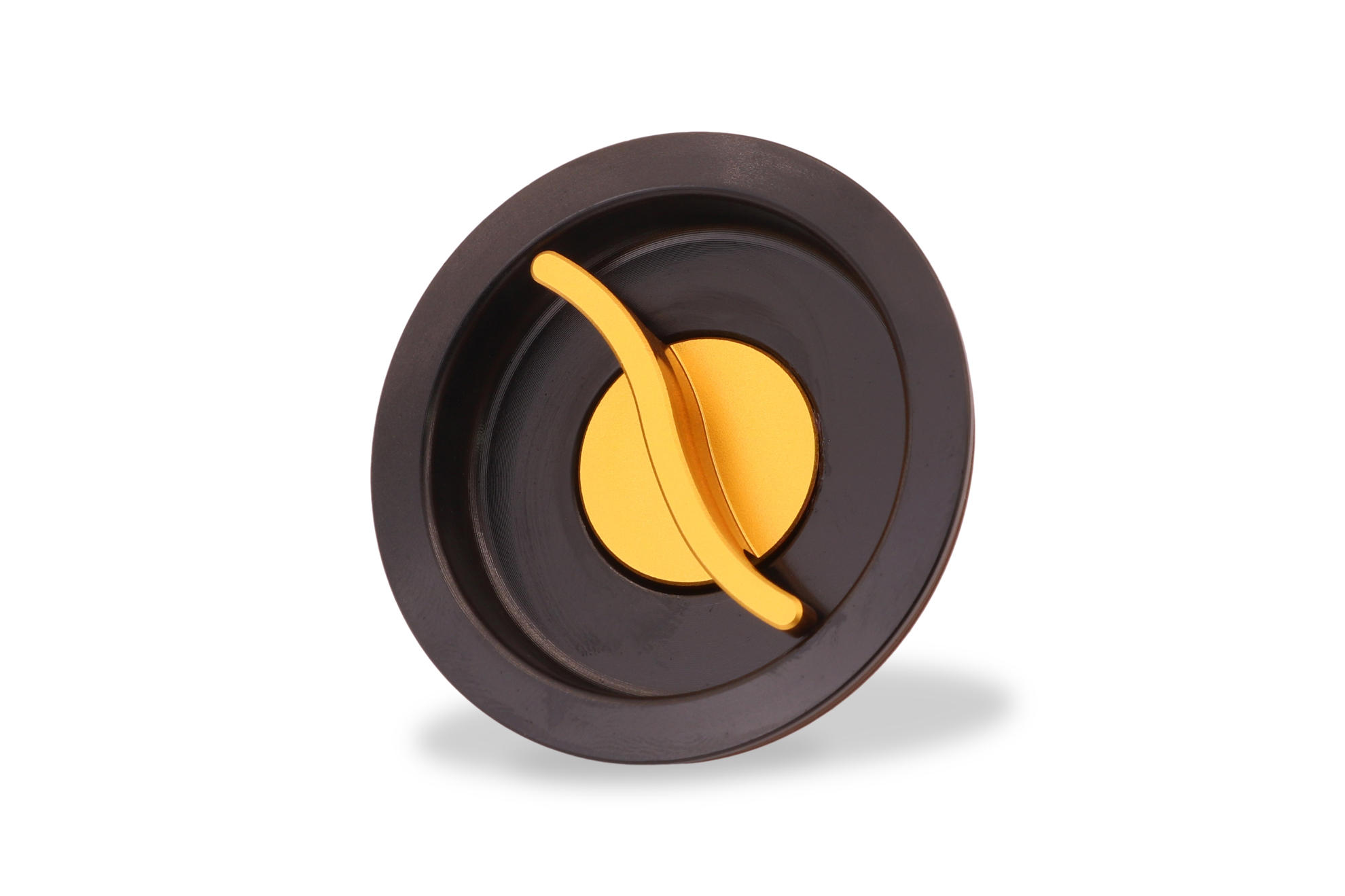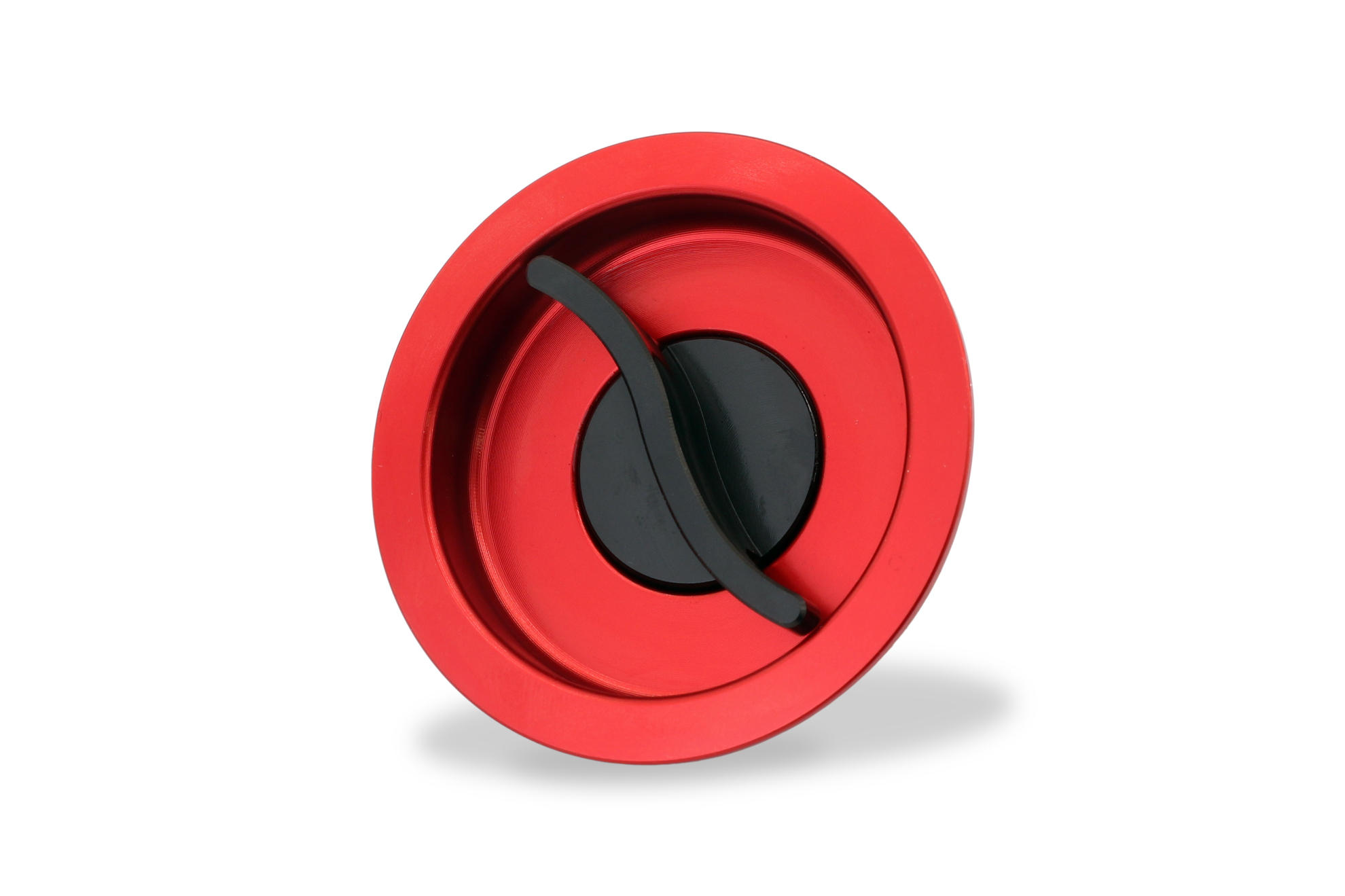 Chiusura senza chiave per tappo serbatoio carburante lavorato dal pieno tramite macchine cnc con successiva anodizzazione superficiale.