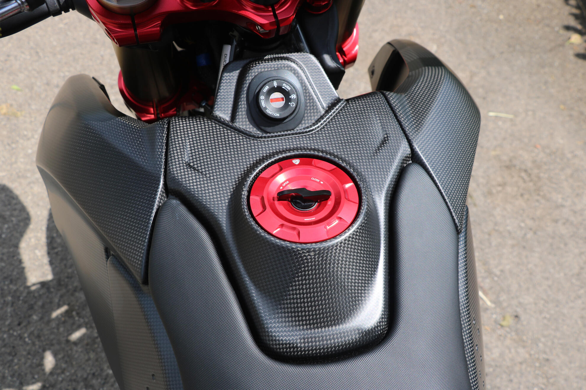 Fuel tank top cover for Ducati Hypermotard 698 Mono made in carbon fiber texture plain with autoclave process.