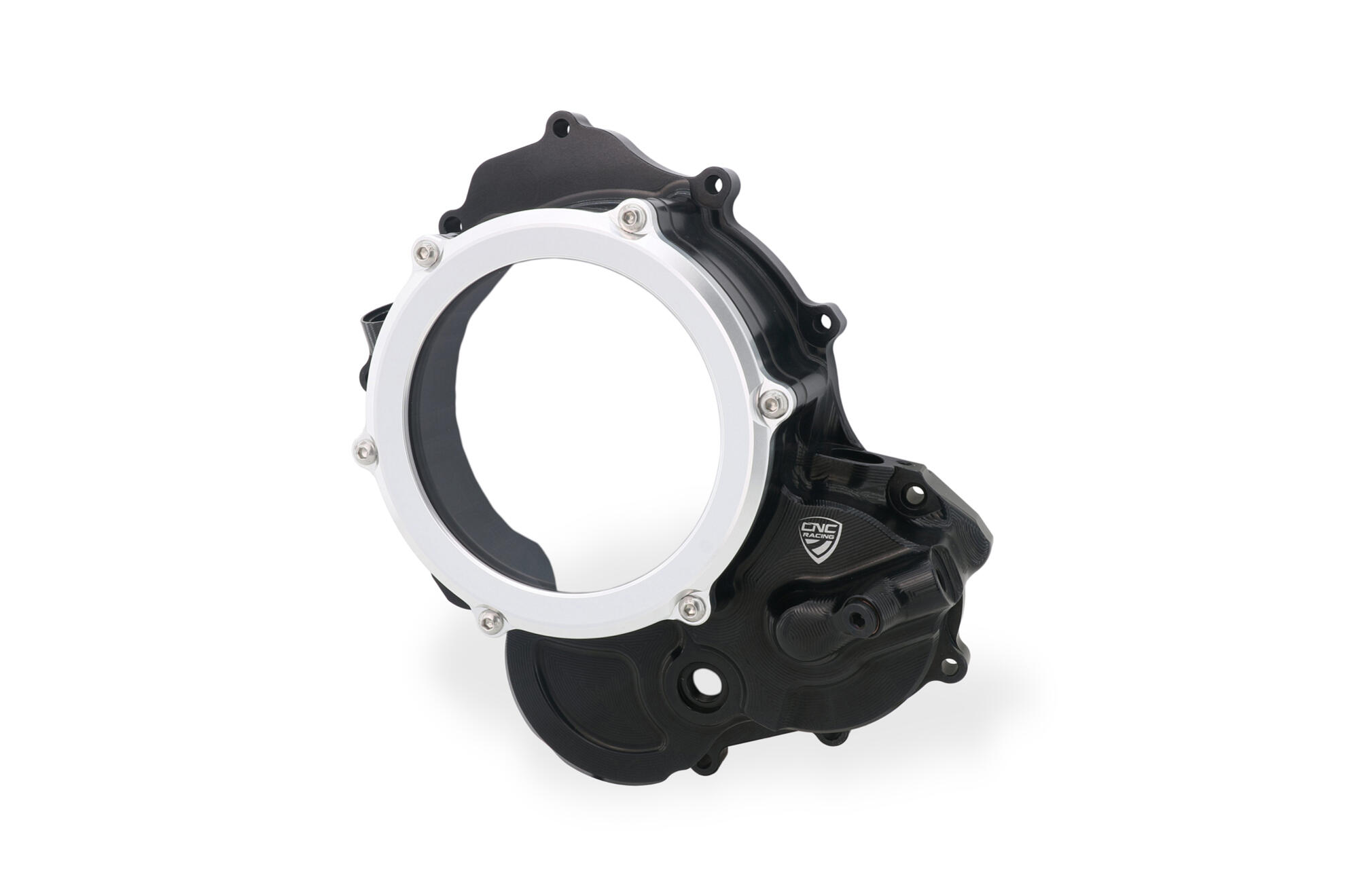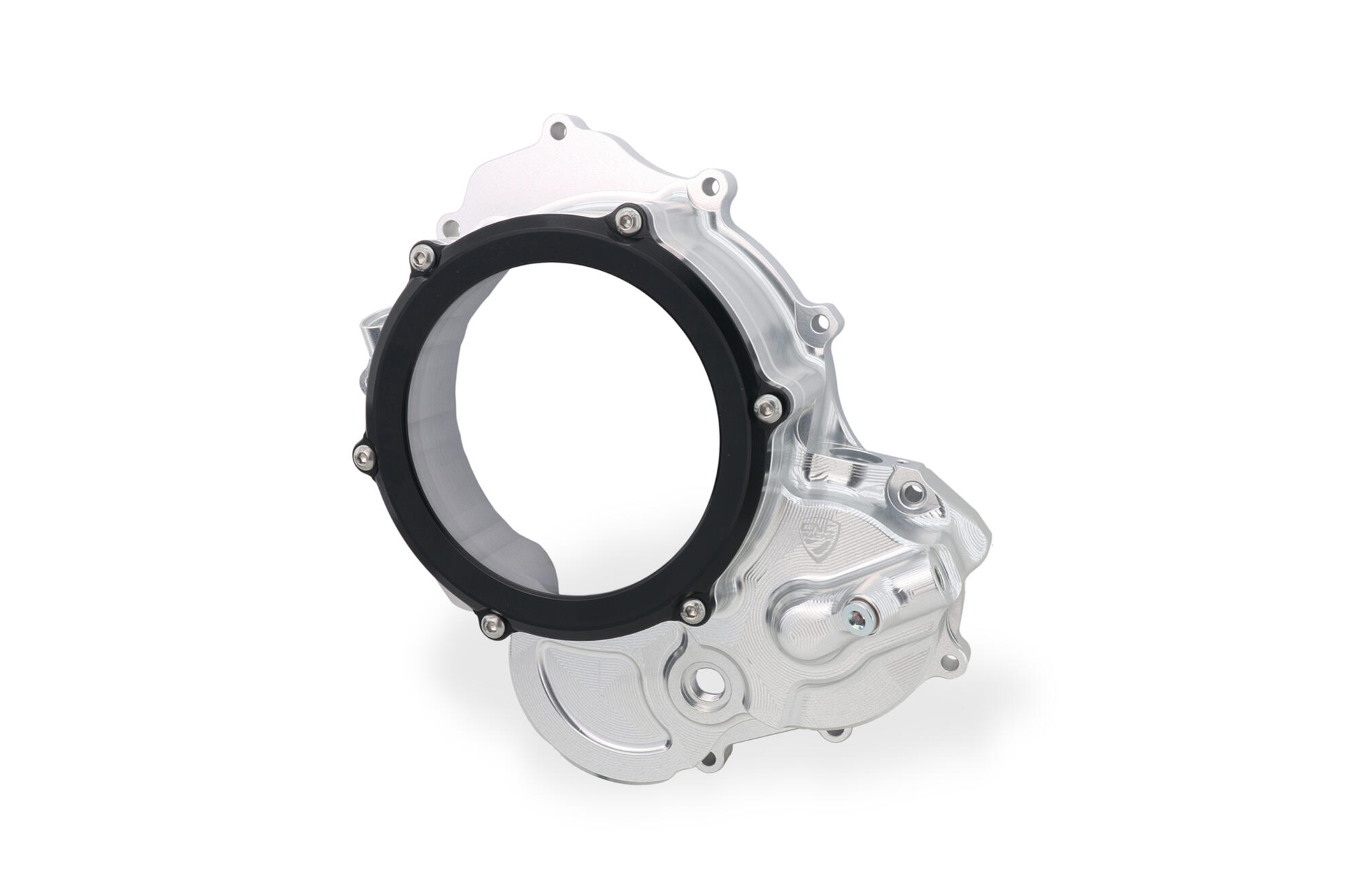 Clear cover oil bath clutch Ducati made in light alloy, machined from solid and then anodized.